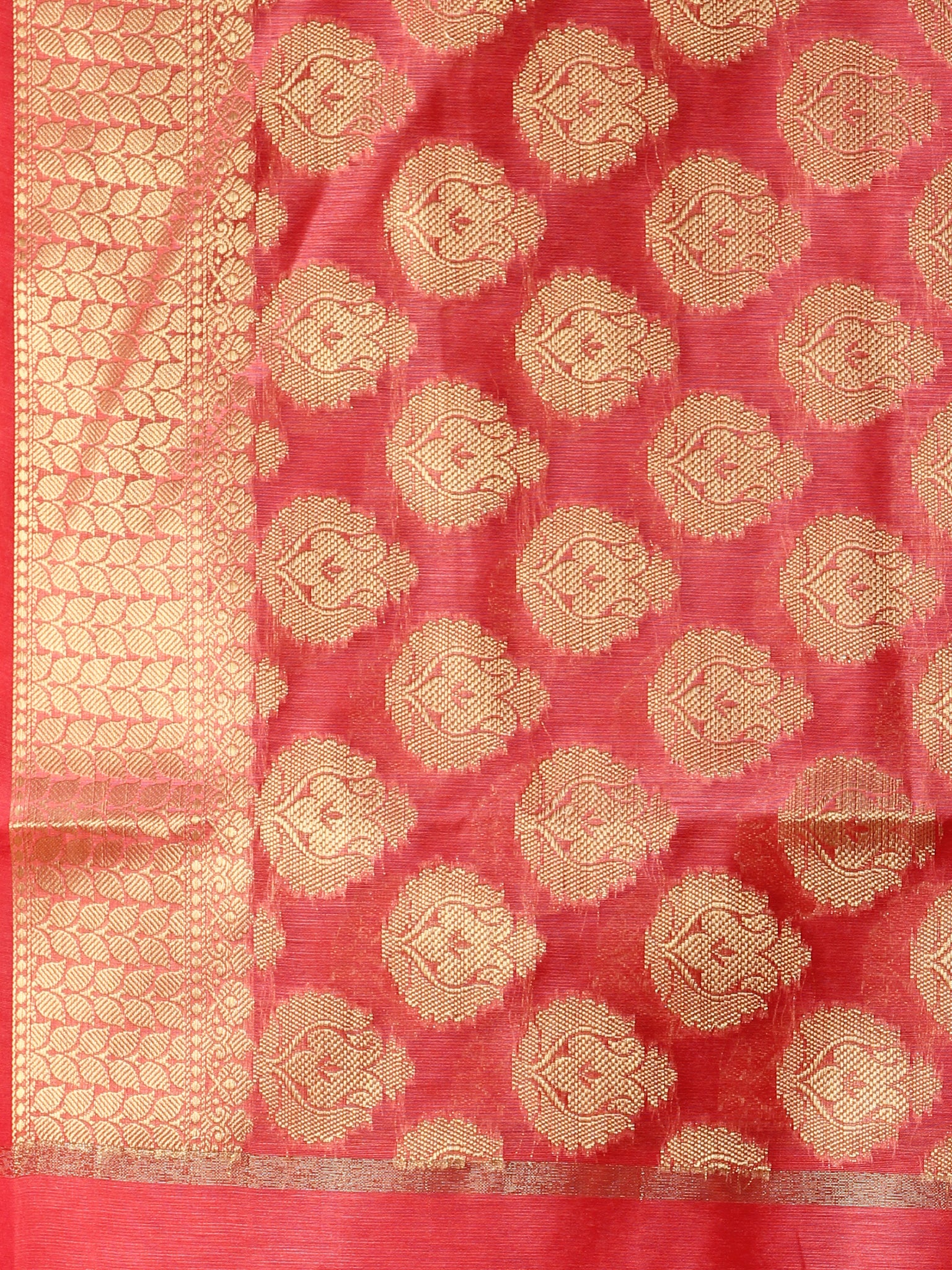 Banarasi Chanderi Dupatta With Resham Work - Coral & Gold - D04170803