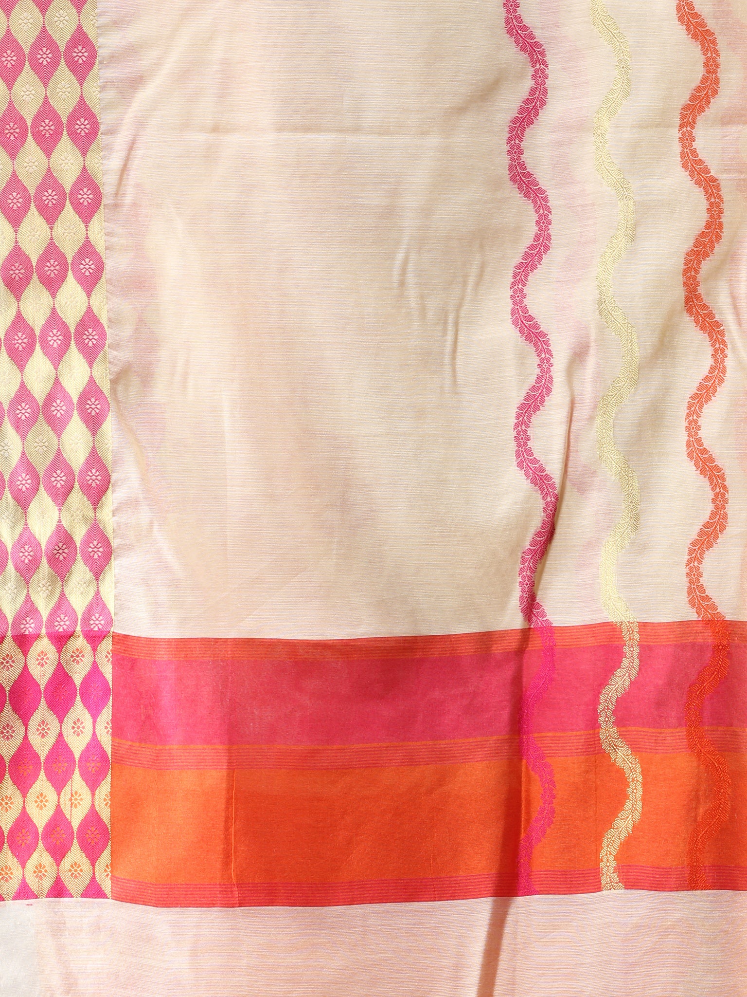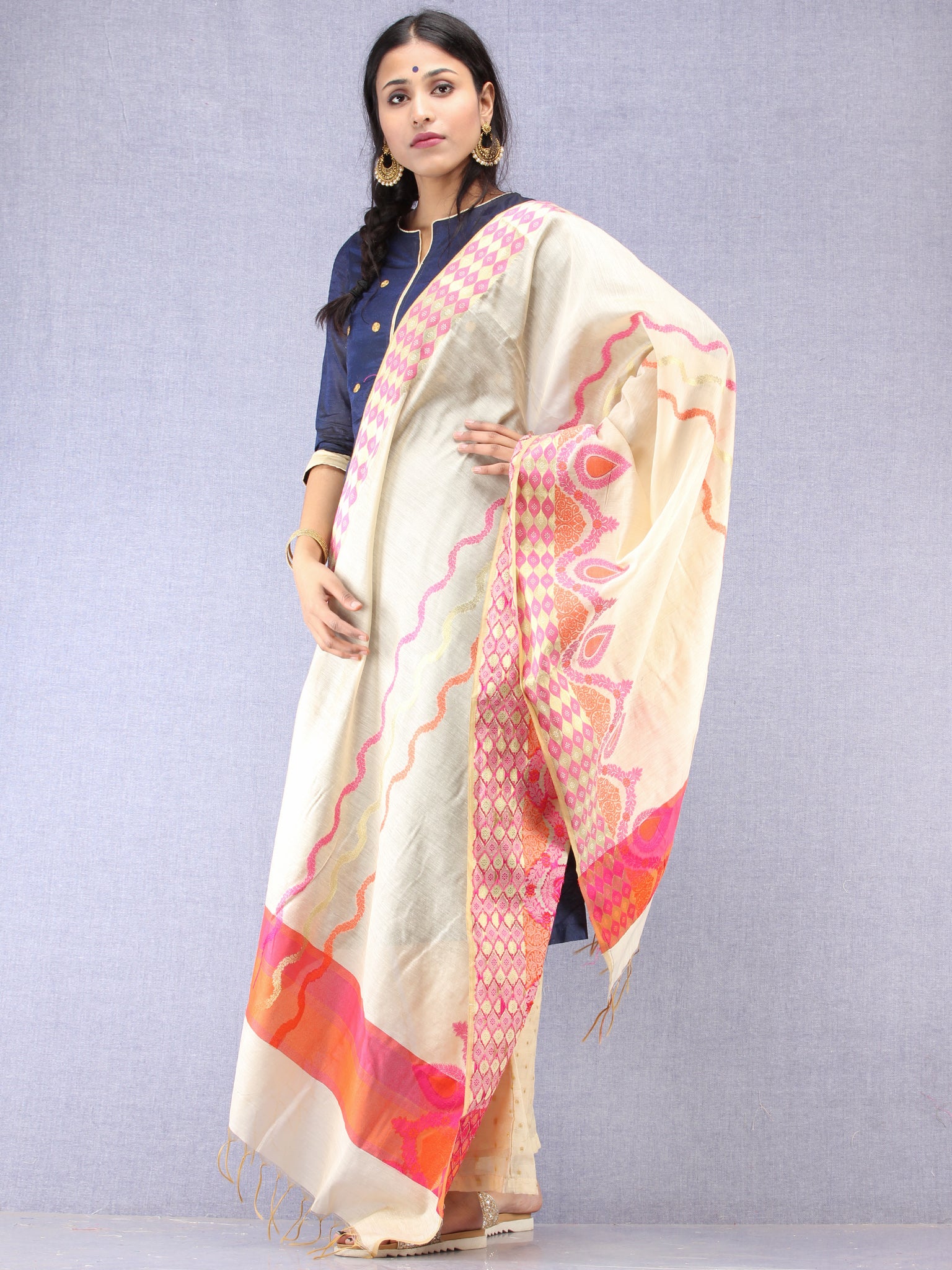 Banarasi Chanderi Dupatta With Resham Work - Ivory Pink & Gold - D04170843