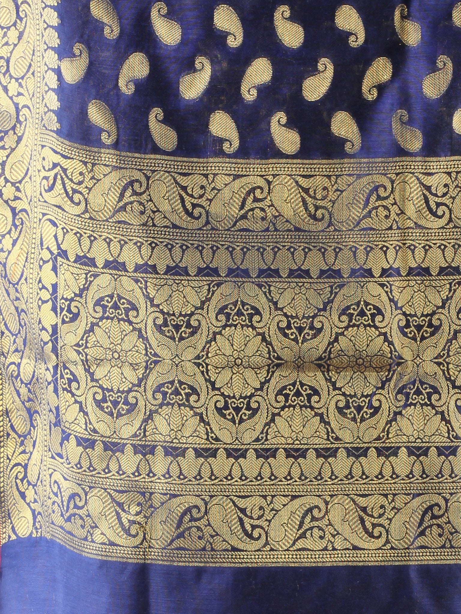Banarasi Chanderi Dupatta With Resham Work - Navy Blue & Gold - D04170857