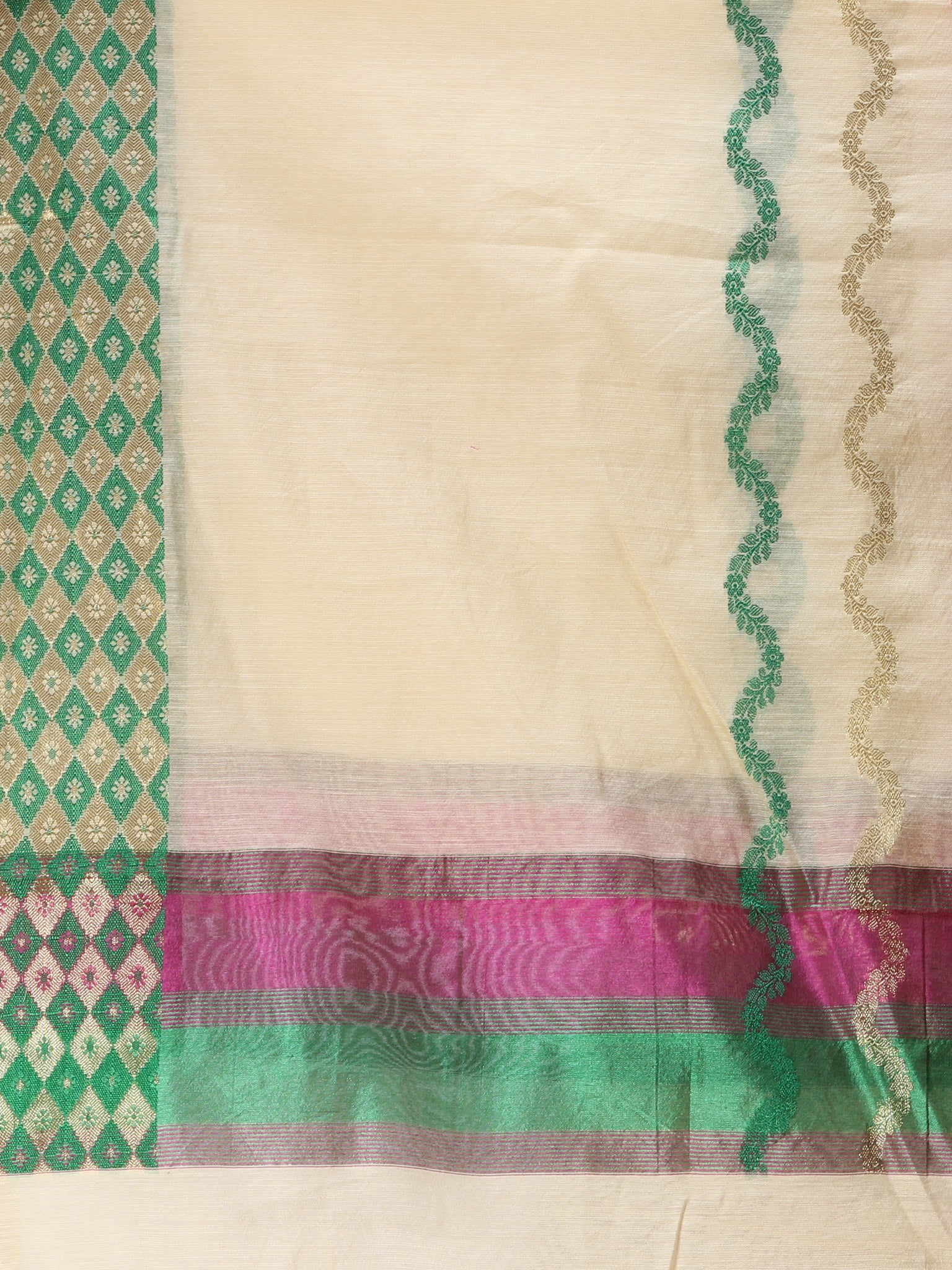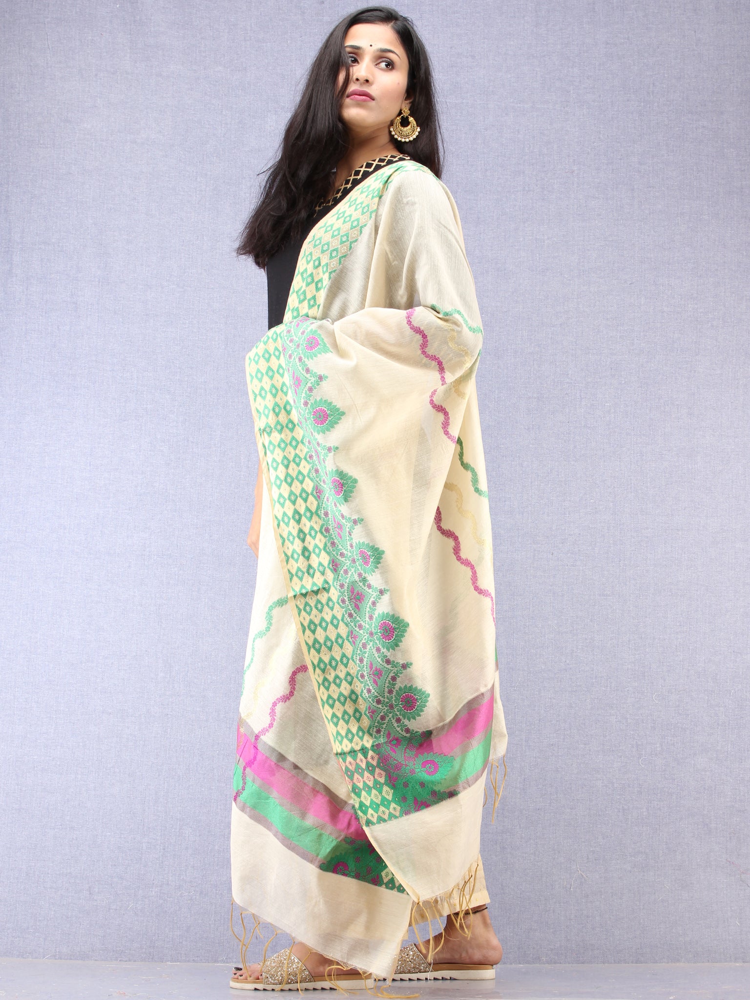 Banarasi Chanderi Dupatta With Zari Work - Ivory Green & Gold - D04170850