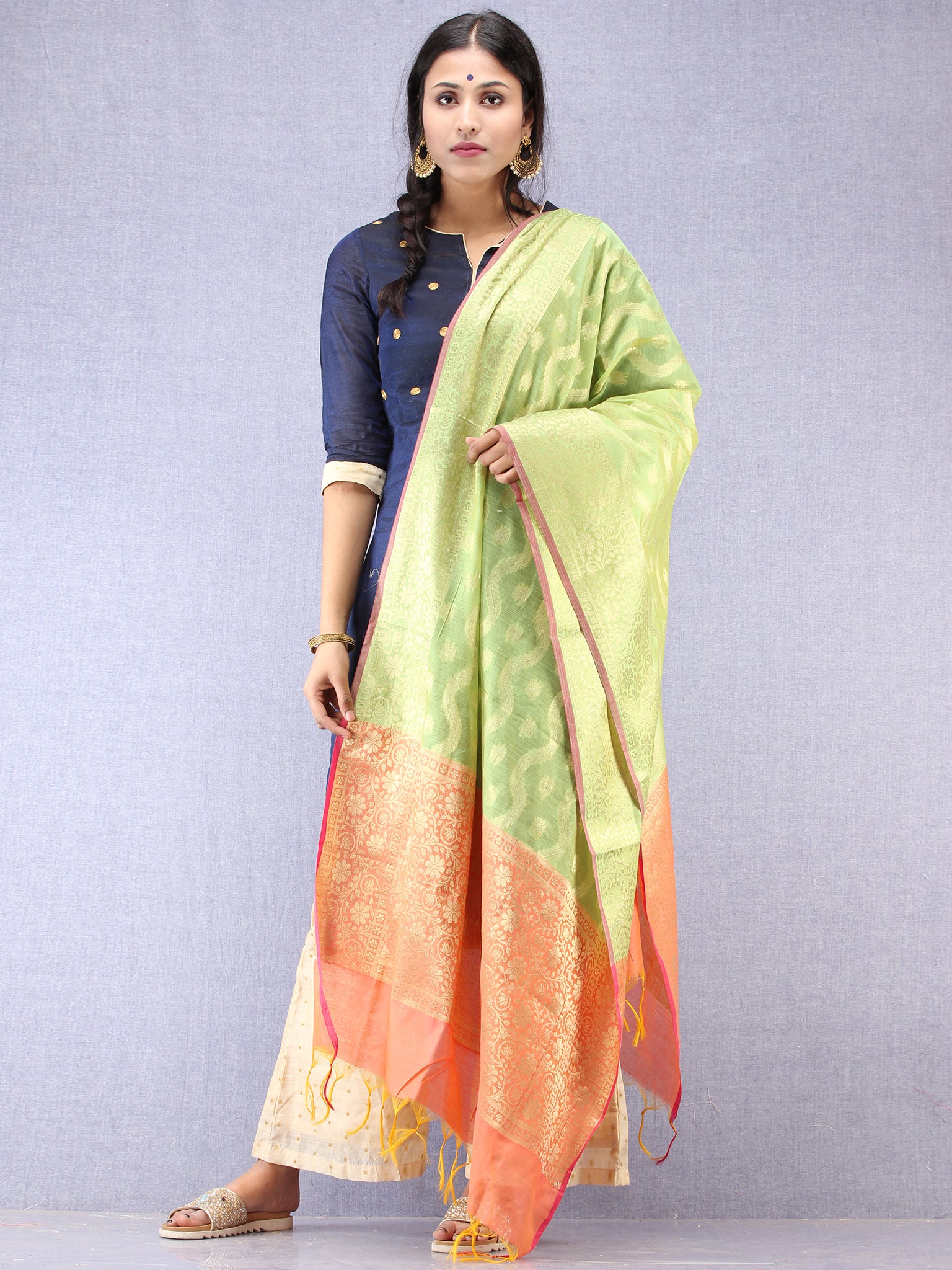 Banarasi Chanderi Dupatta With Zari Work - Light Green Pink & Gold - D04170840