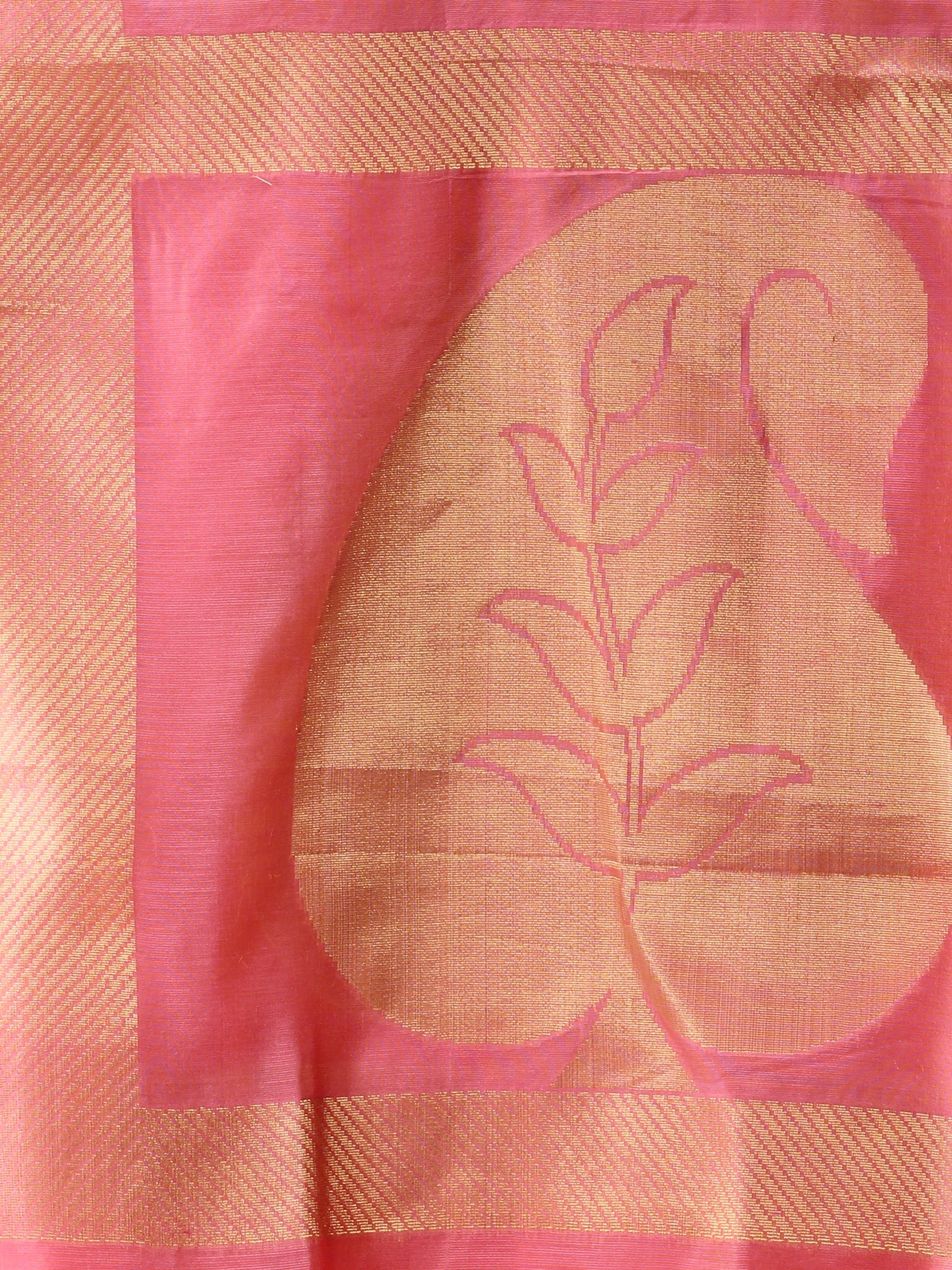 Banarasi Chanderi Dupatta With Zari Work - Pink & Gold - D04170812