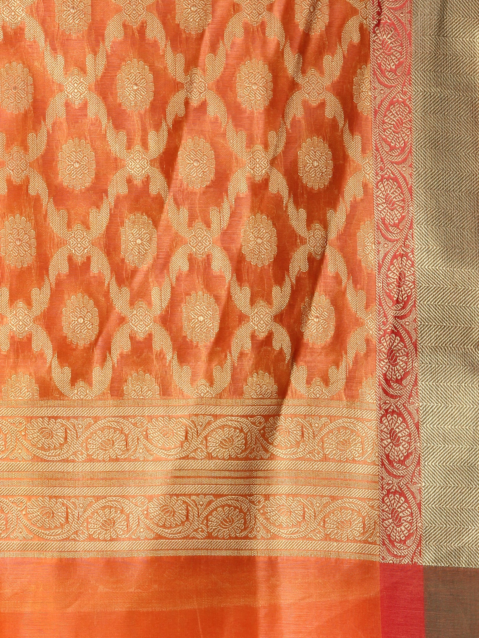 Banarasi Chanderi Dupatta With Zari Work - Yellow & Gold - D04170793