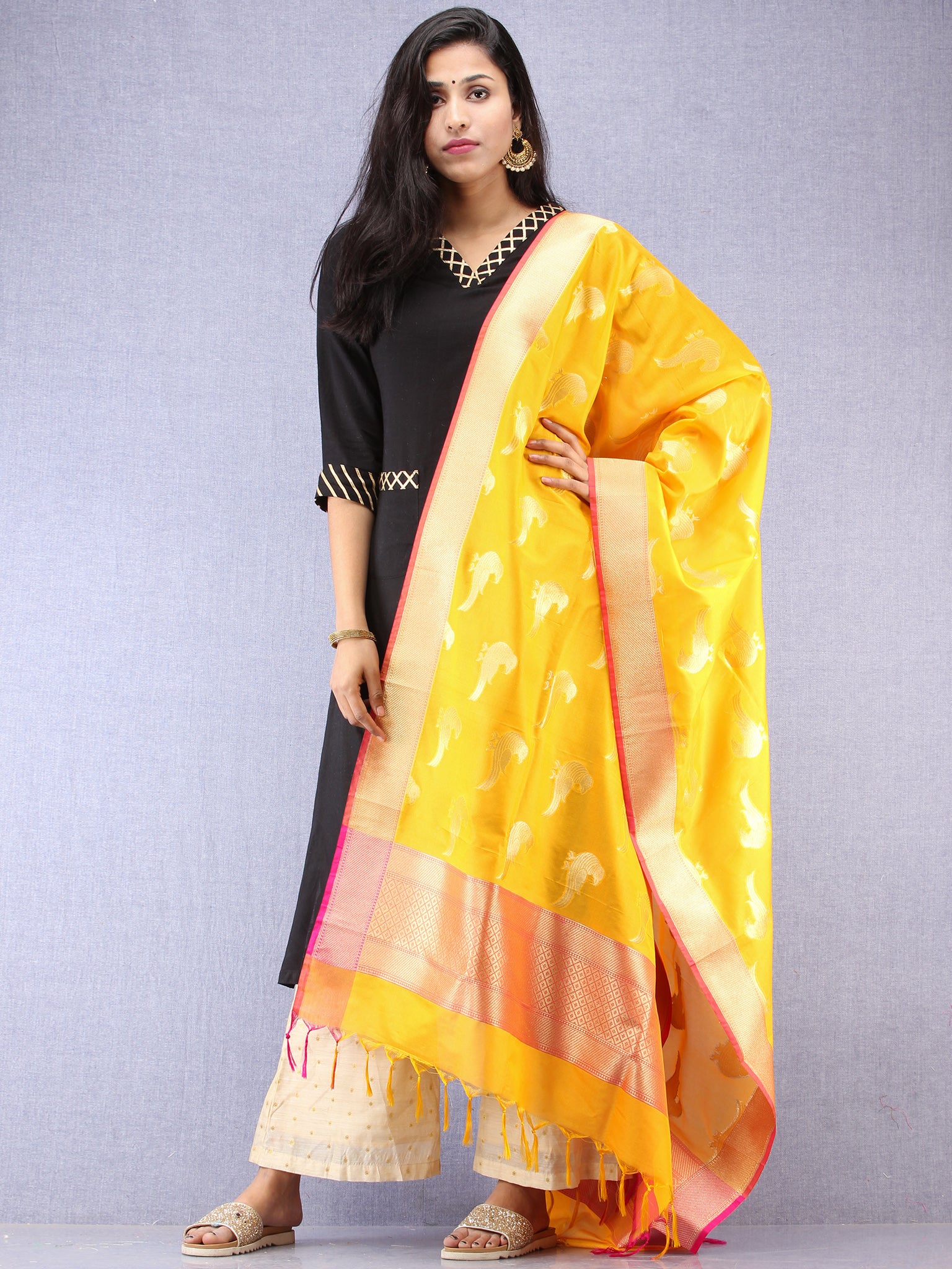 Banarasi Kanni Silk Dupatta With Zari Work - Yellow & Gold - D04170876