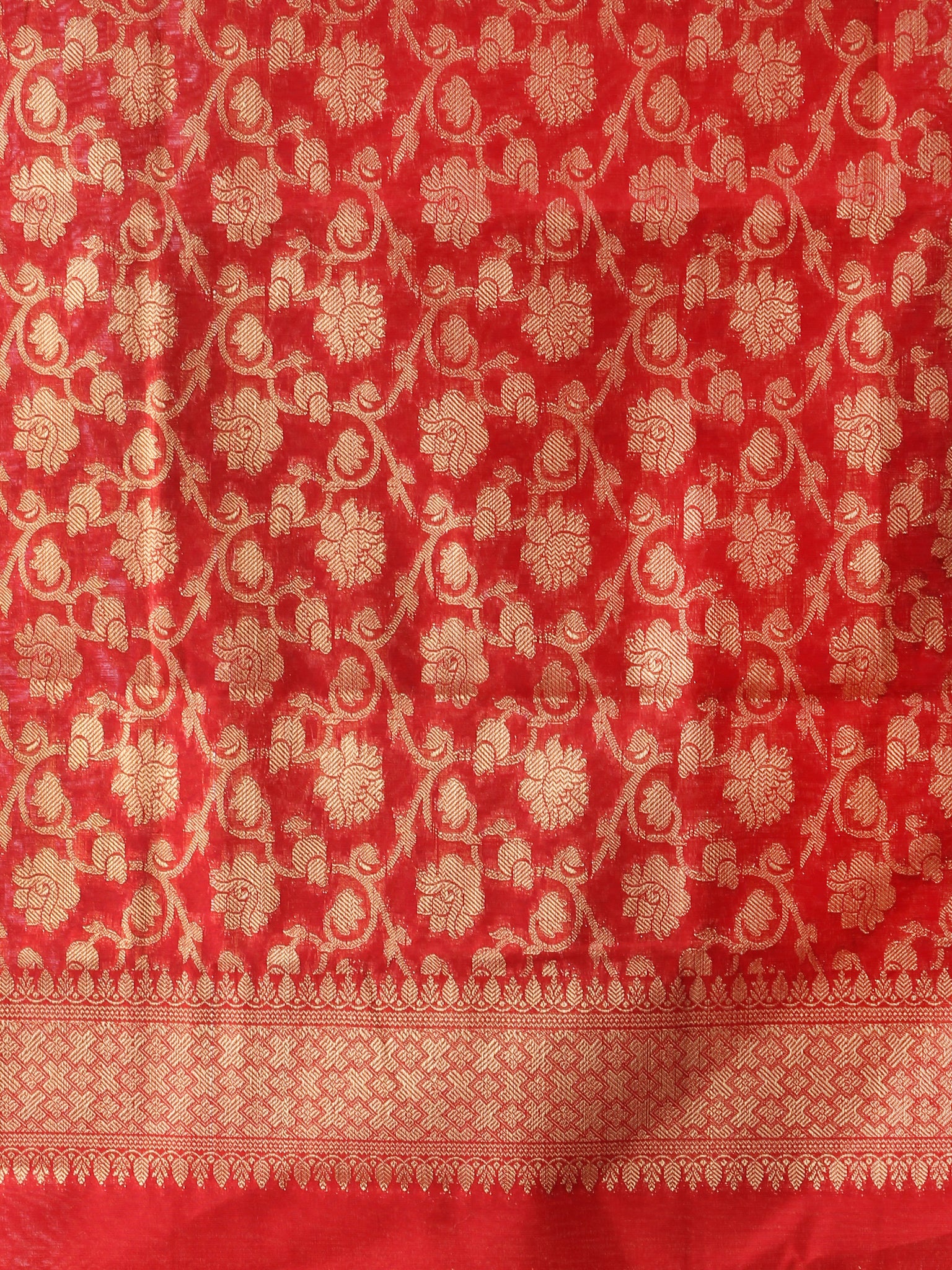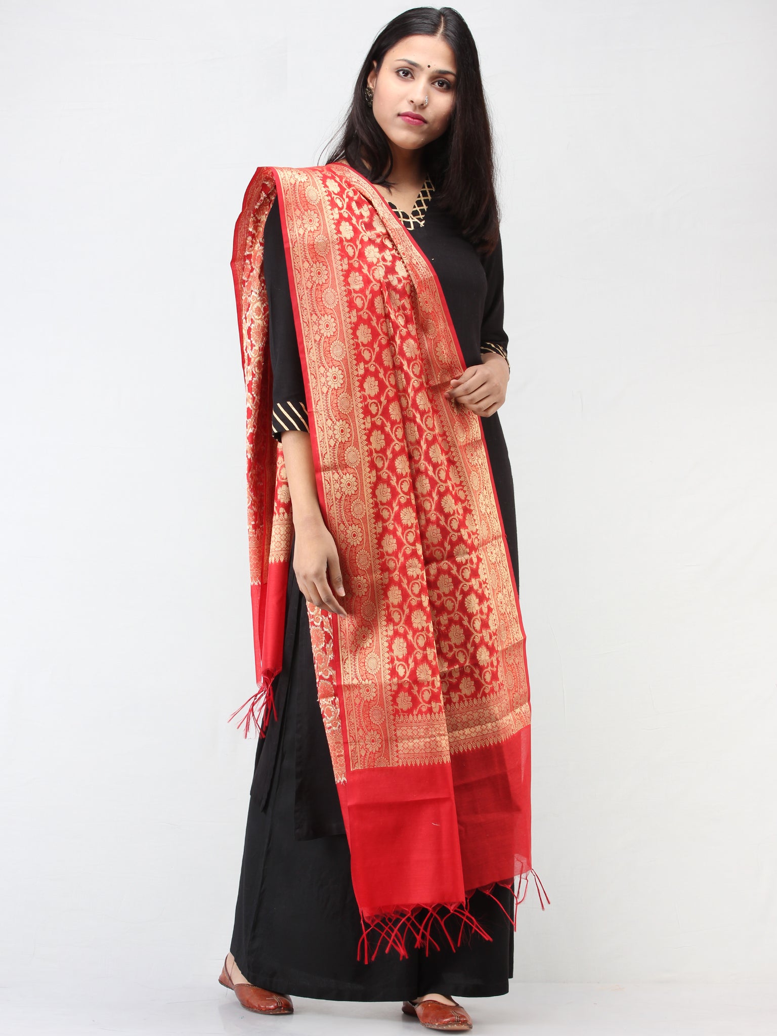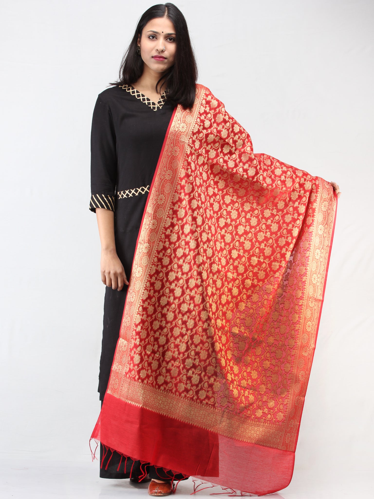 Banarasi Chanderi Jacquard Dupatta With Zari Work - Red & Gold - D04170929