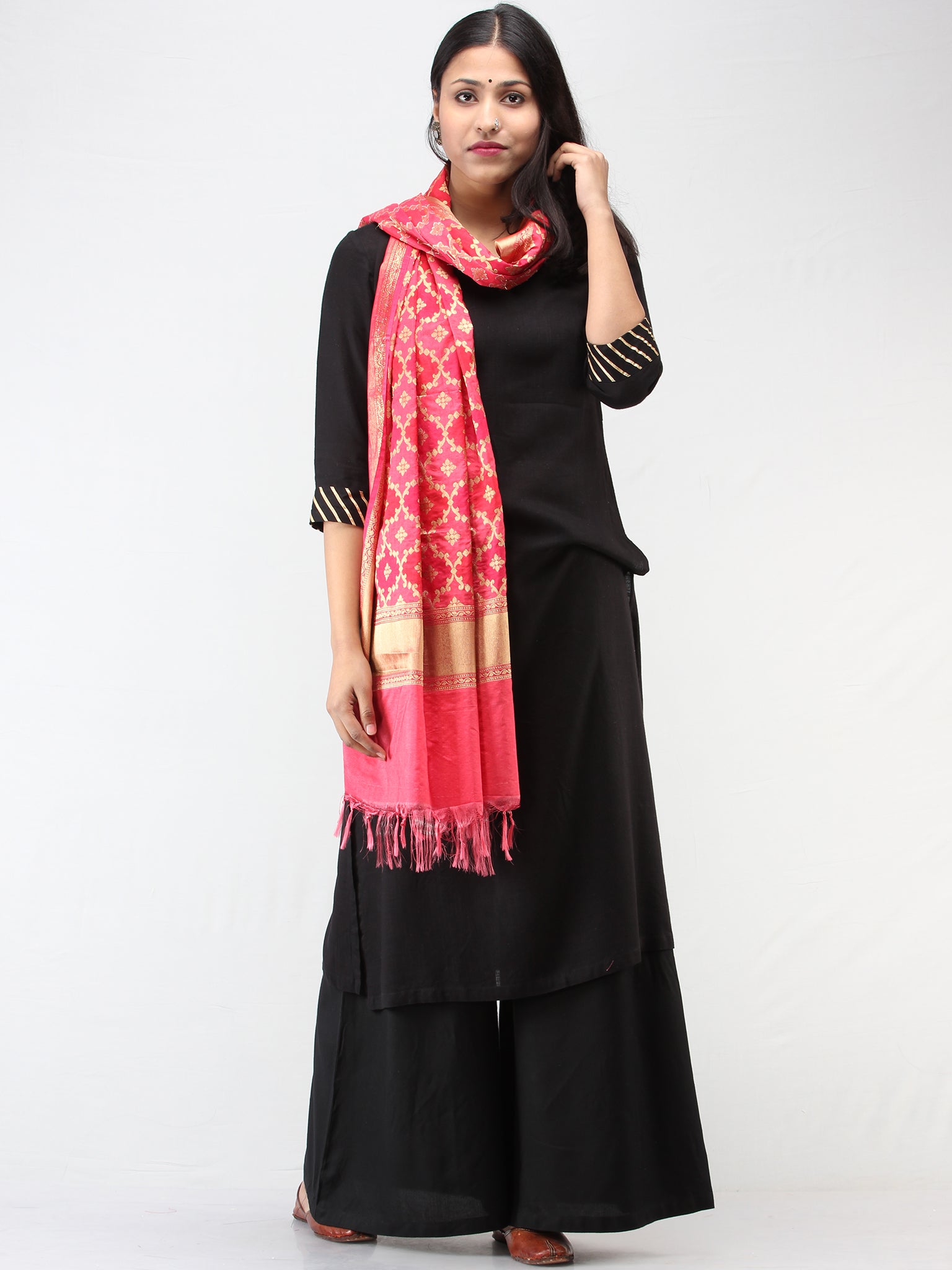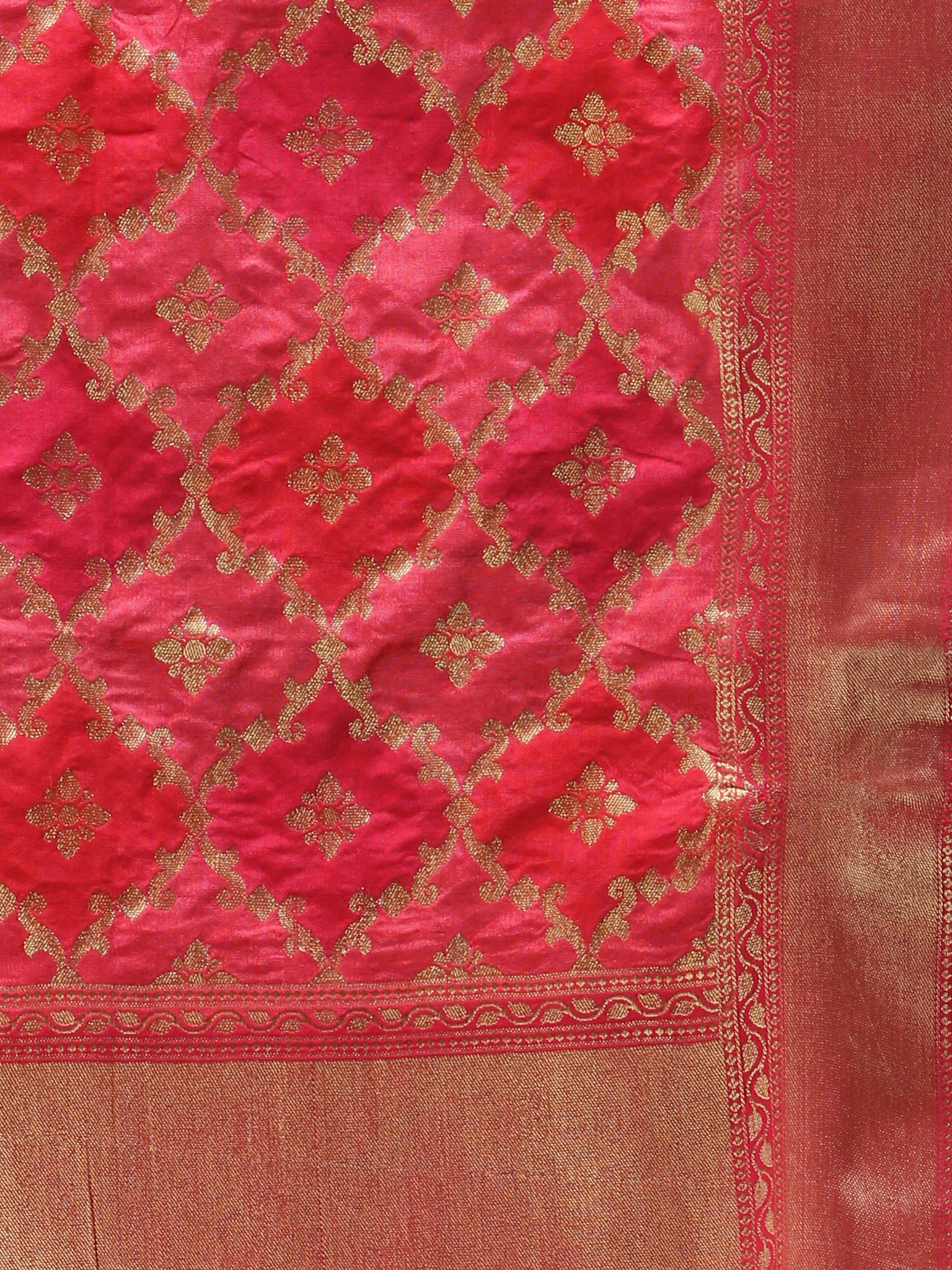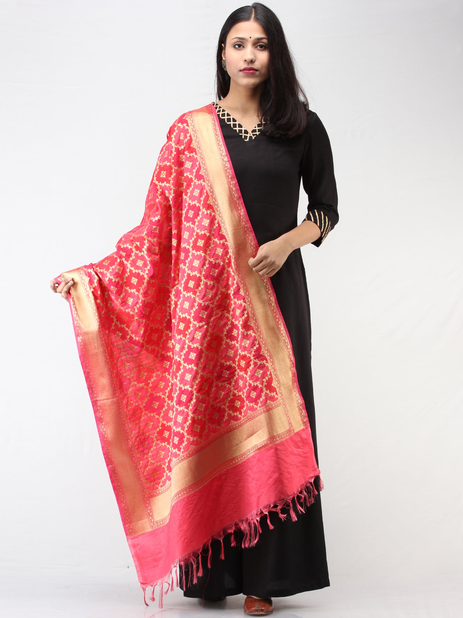 Banarasi Semi Georgette Dupatta With Zari Work - Pink Magenta & Gold - D04170921