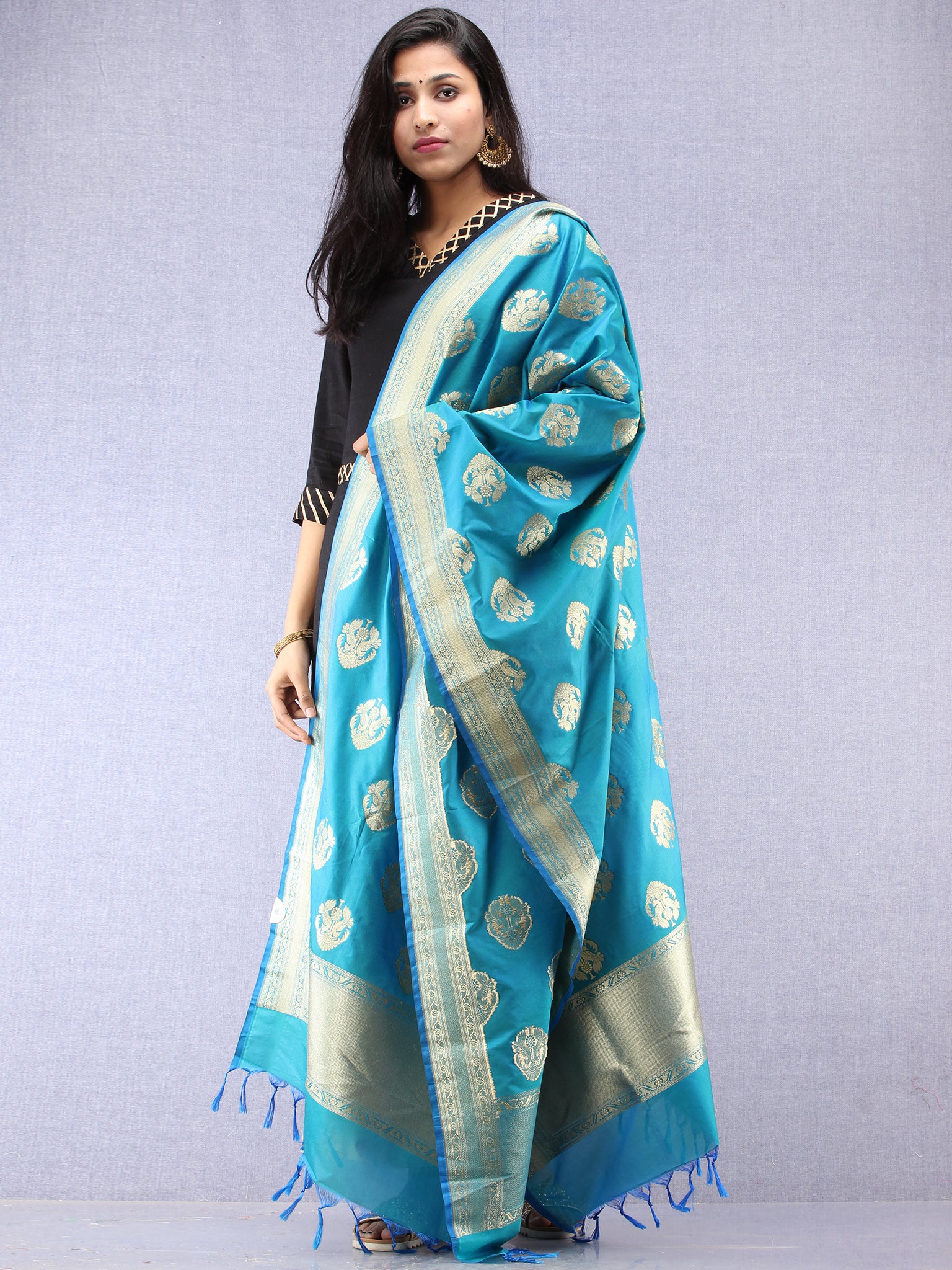 Banarasi Kanni Silk Dupatta With Zari Work - Blue & Gold - D04170877