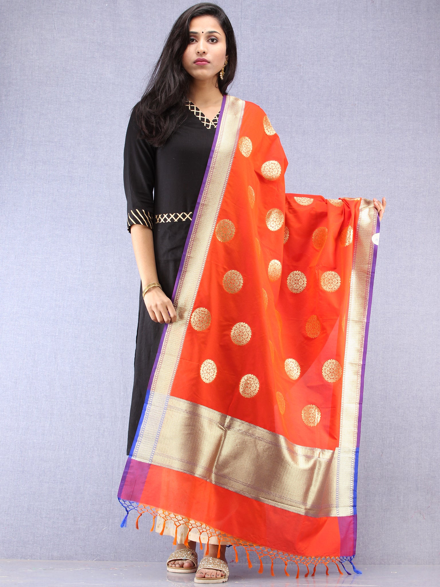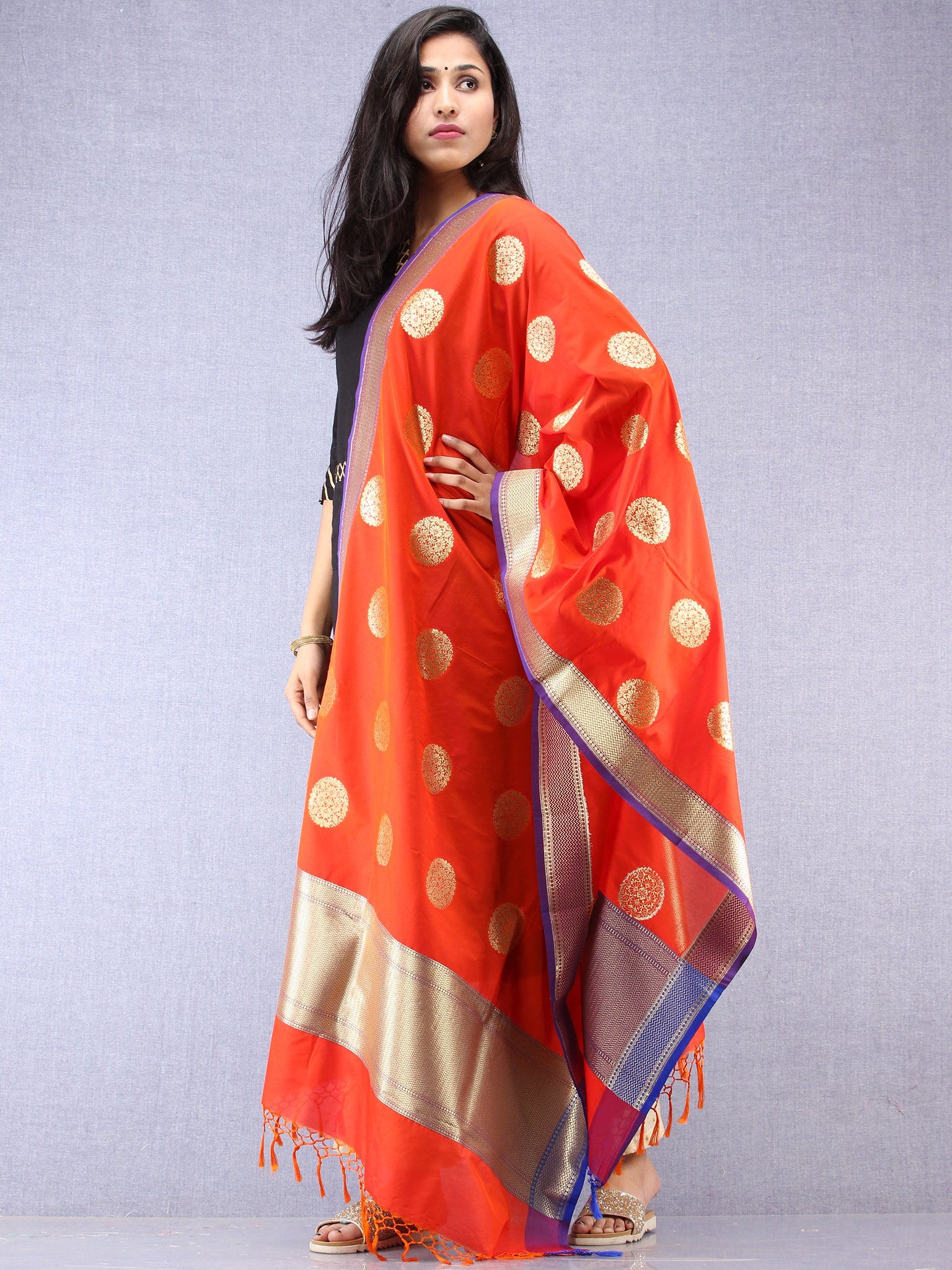Banarasi Kanni Silk Dupatta With Zari Work - Red & Gold - D04170881
