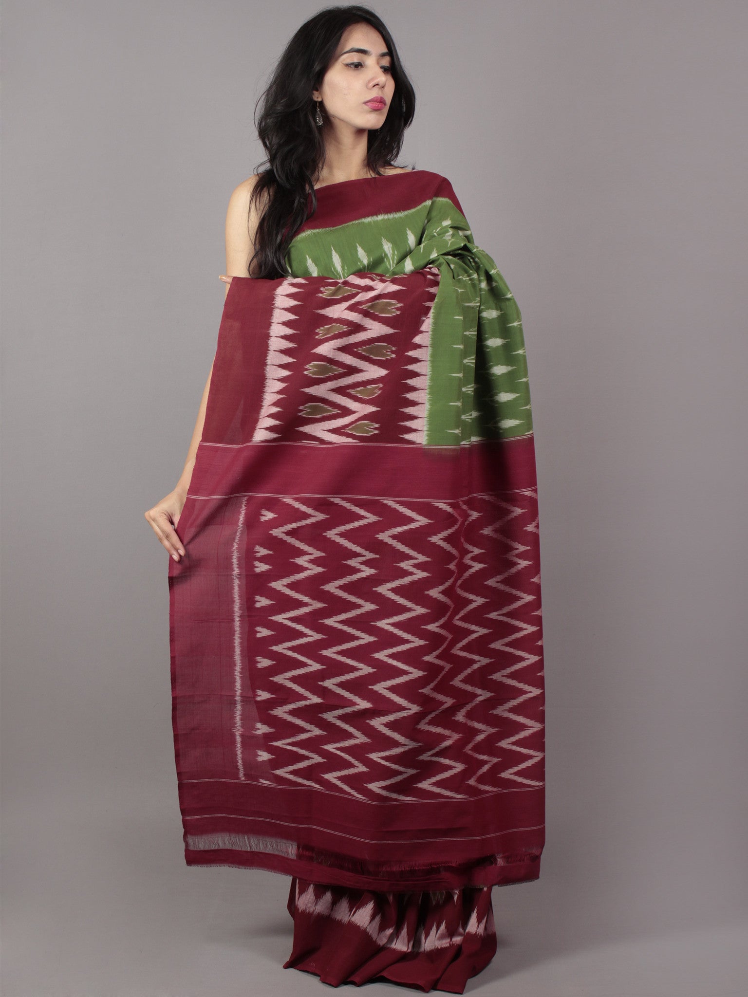 PRODUCT: The fabric of this saree is 100% pure cotton, fully hand-woven in Ikat style of dyeing.