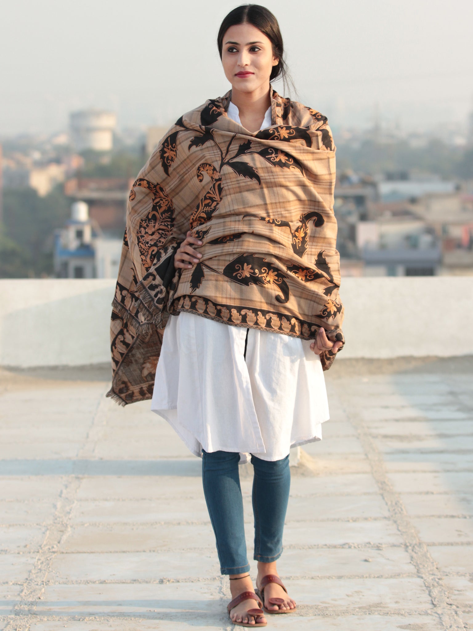 PRODUCT : Aari embroidered outlining check, pure wool Kashmir Shawl. The most subtle and aesthetically beautiful product of Kashmir Shawl artistry. 100% pure wool.
