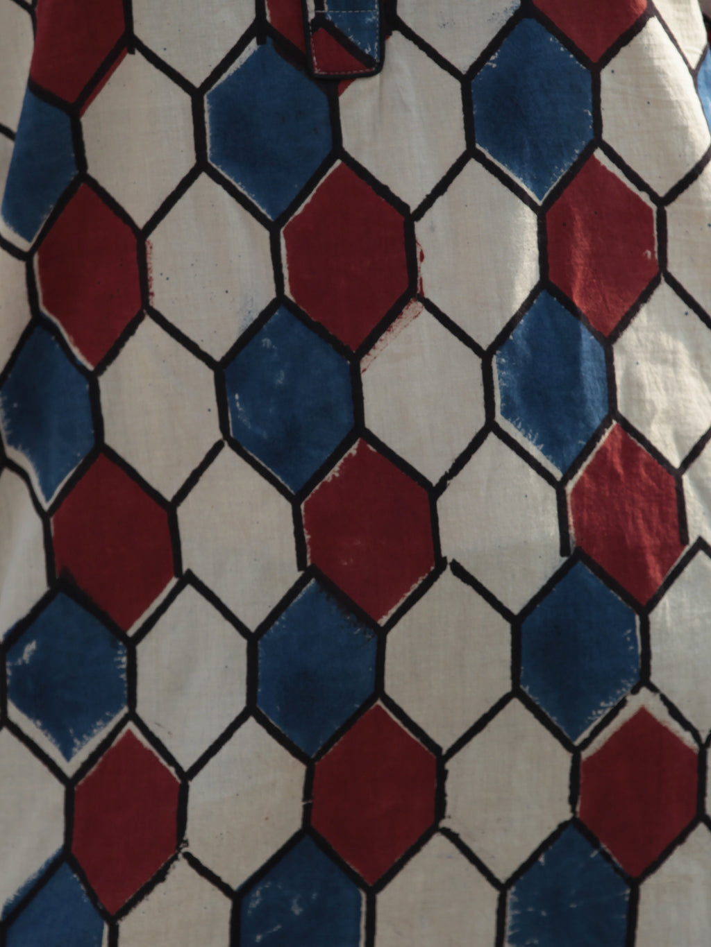 Beige Indigo Red Hand Block Printed Ajrakh Kurta With Stand Collar  - K40F1169