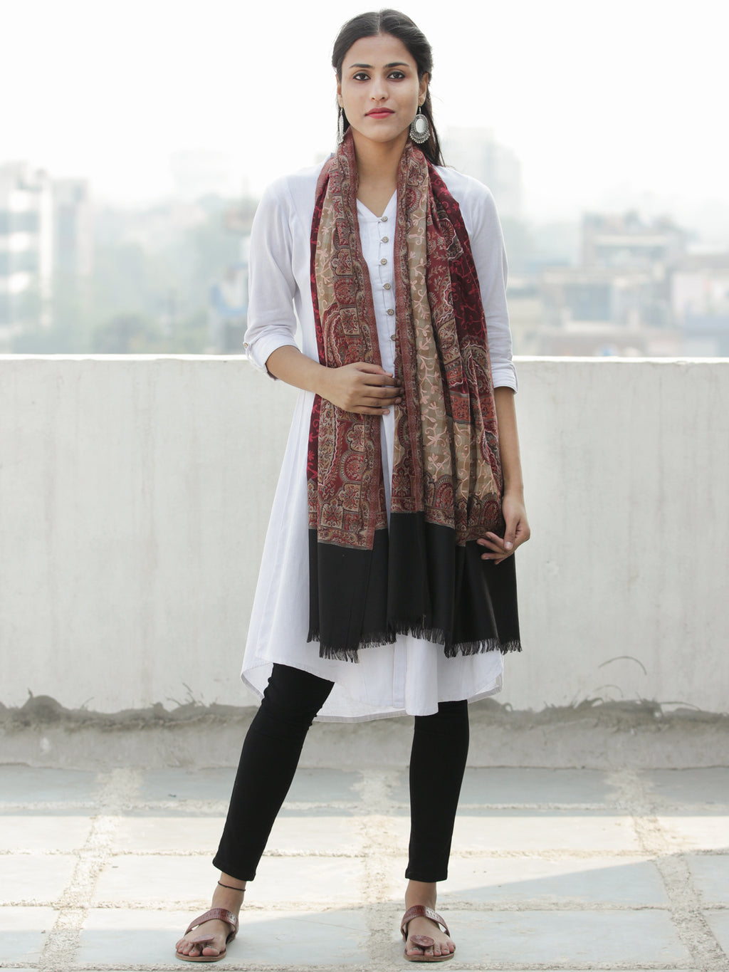 PRODUCT : Jamawari Woollen Stole with aari embroidery work , a traditional work from Kashmir. The most subtle and aesthetically beautiful product of Kashmir Shawl artistry. 100% pure wool.