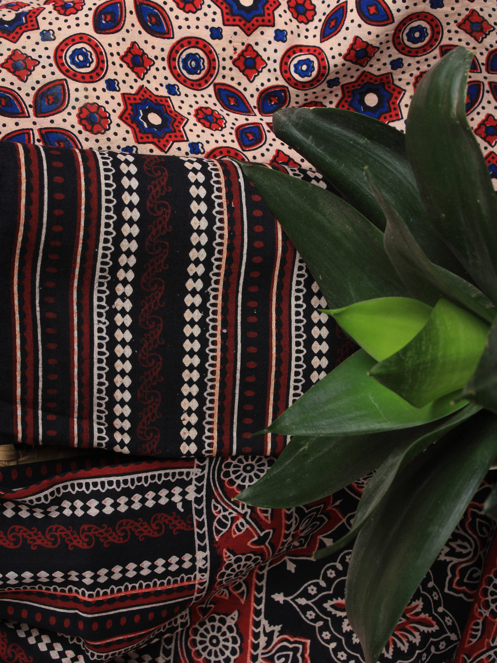 Black Beige Maroon Ajrakh Hand Block Printed Suit Set (Set of 3) - SU01HB456