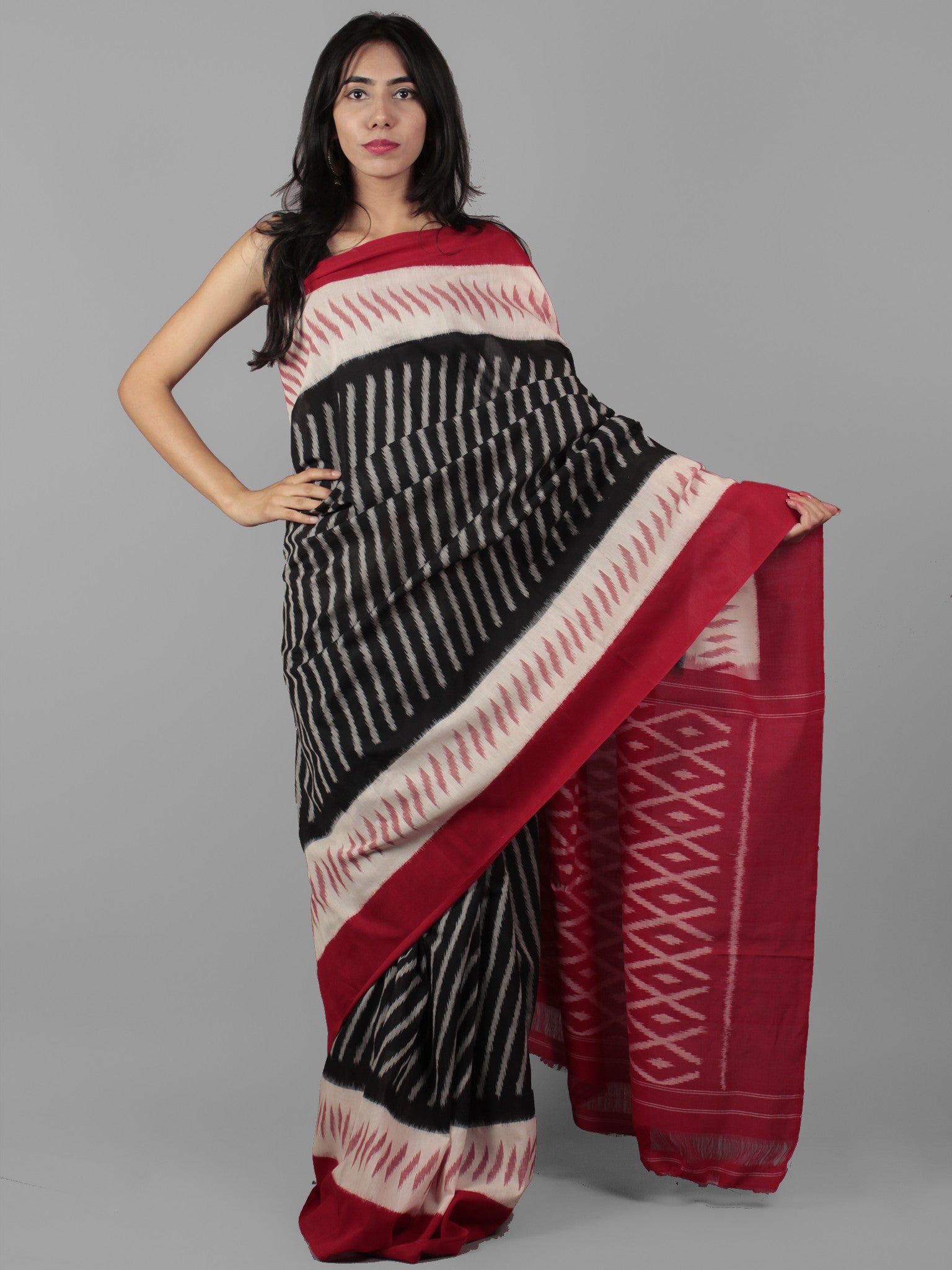 PRODUCT: The fabric of this saree is 100% pure cotton, fully hand-woven in Ikat style of dyeing.