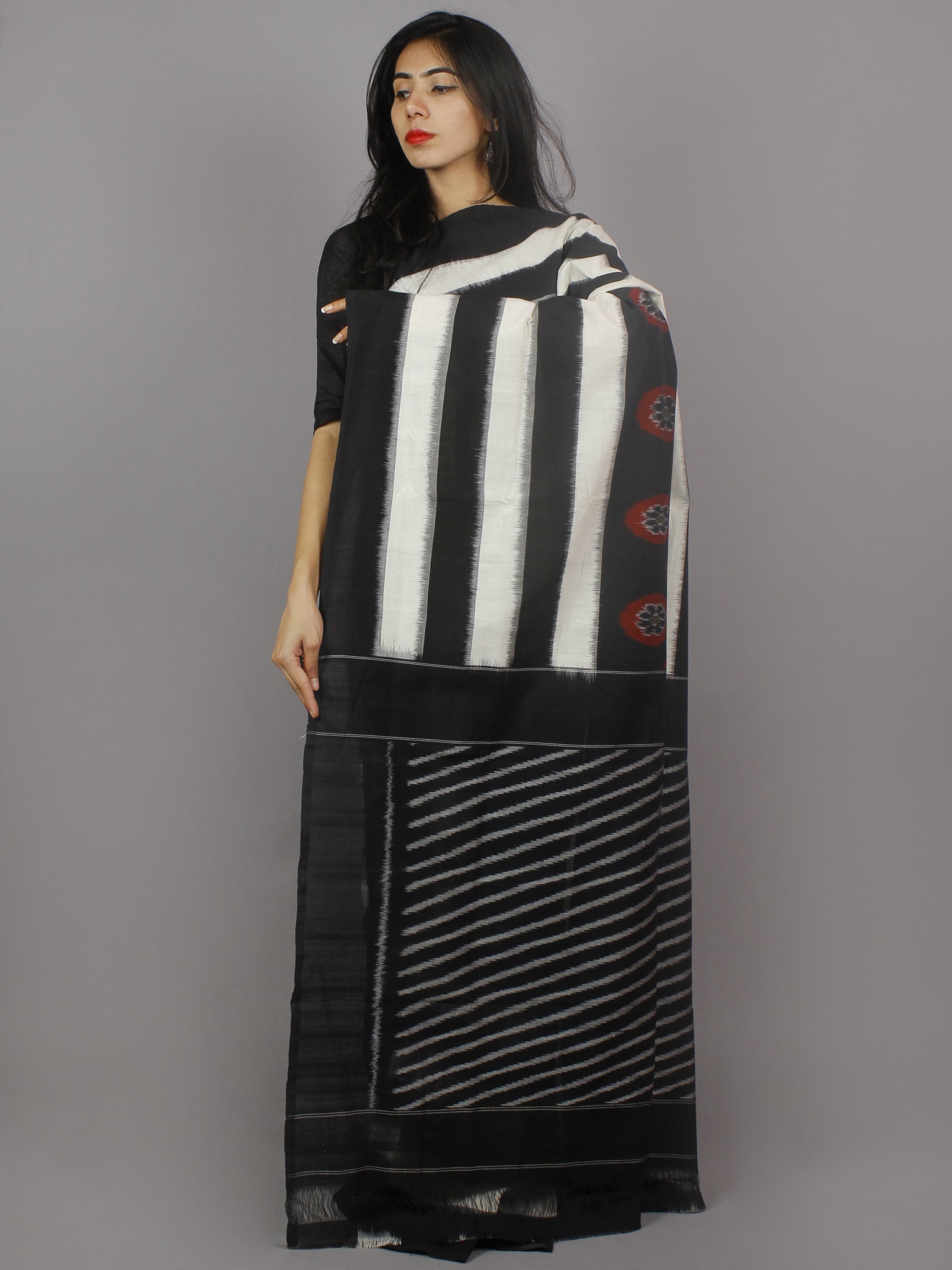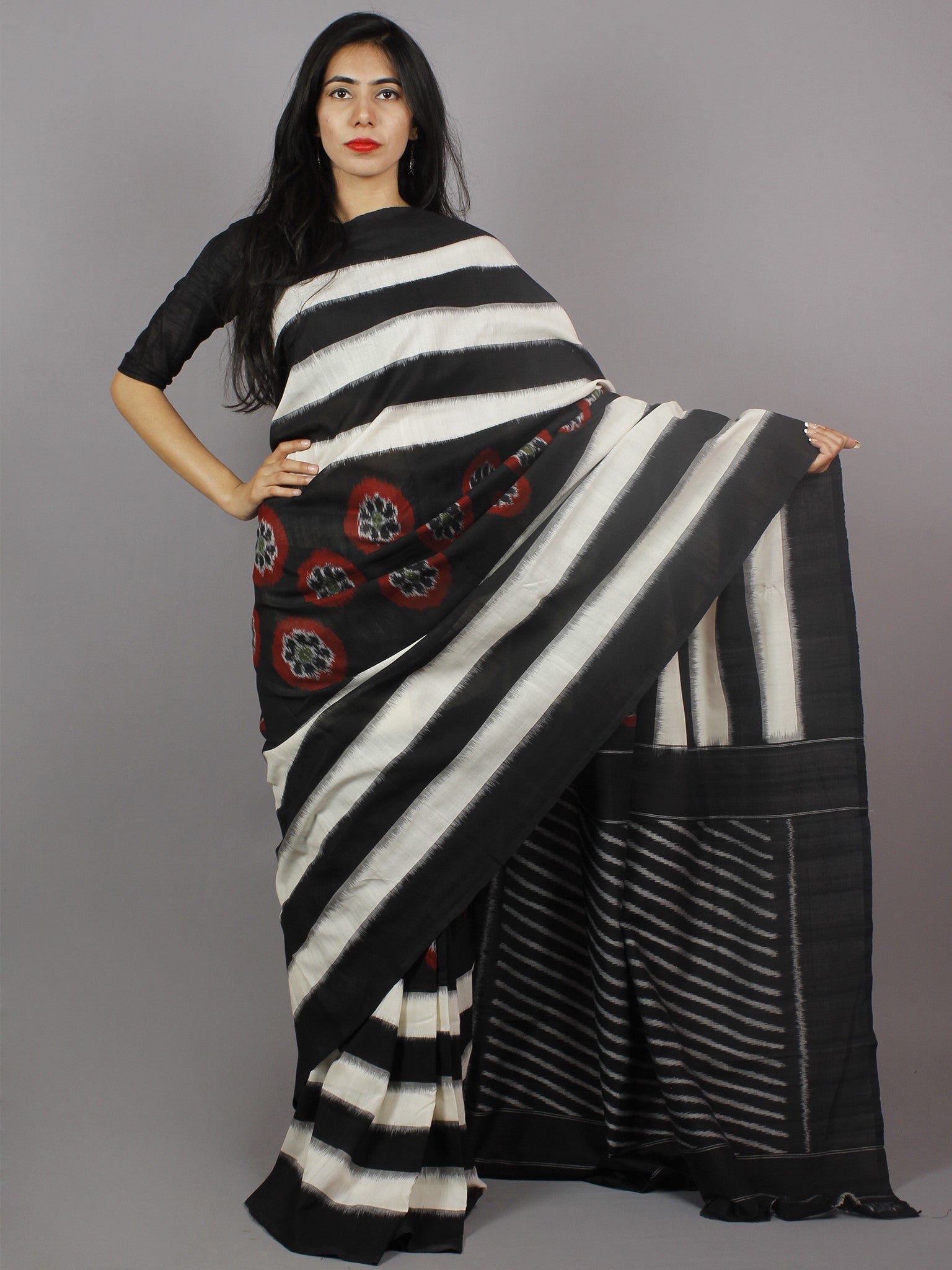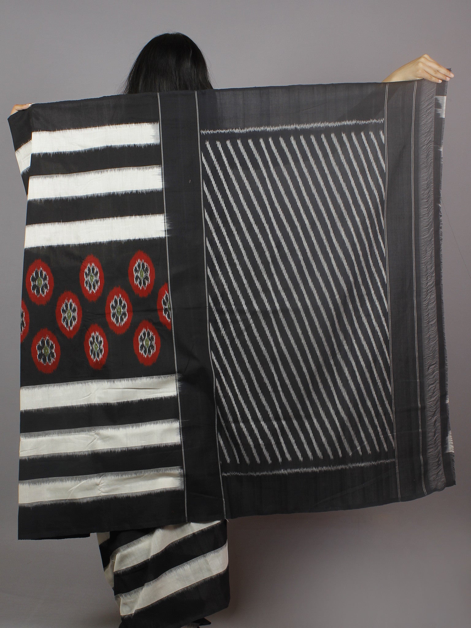 PRODUCT: The fabric of this saree is 100% pure cotton, fully hand-woven in Ikat style of dyeing.