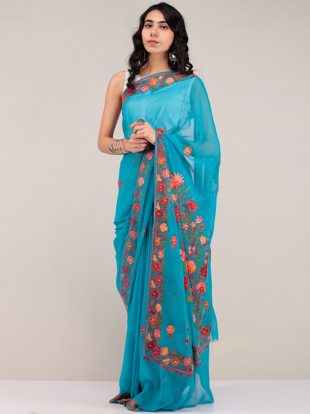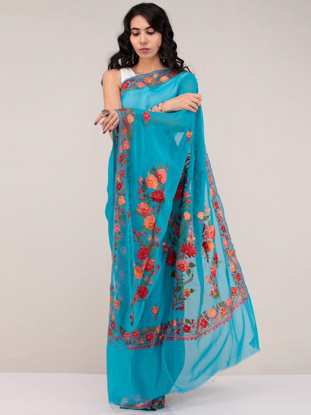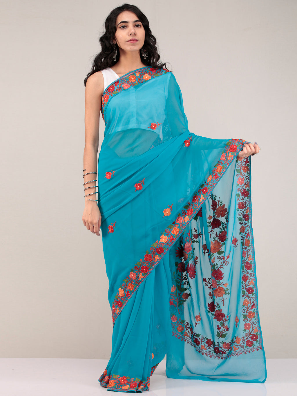 PRODUCT: Embroidered Saree in traditional Aari Work of Kashmir
