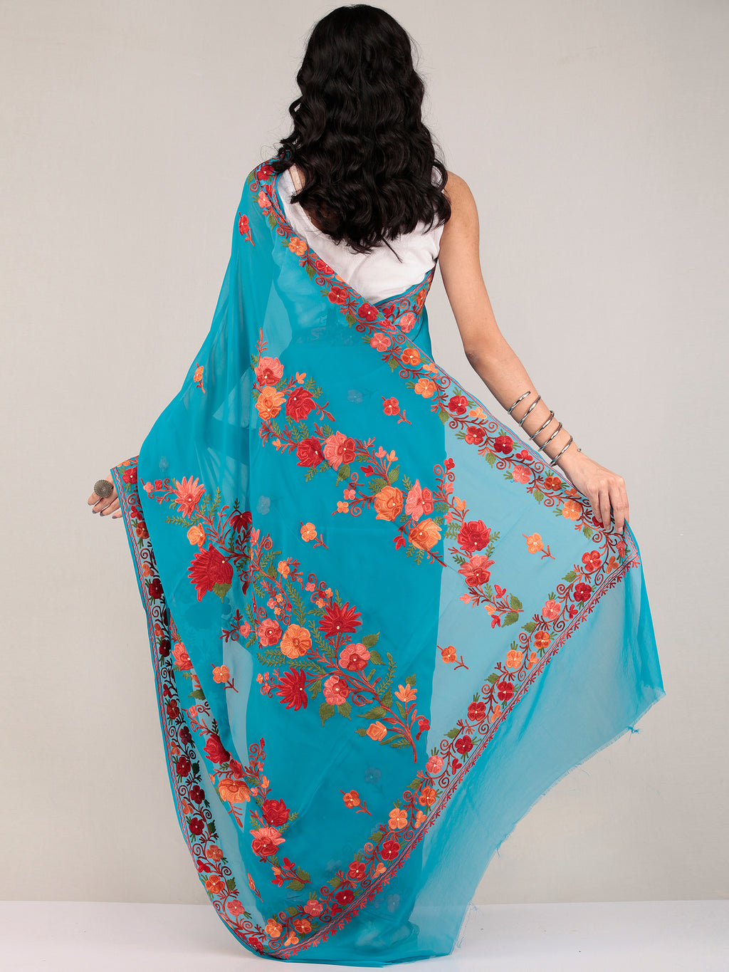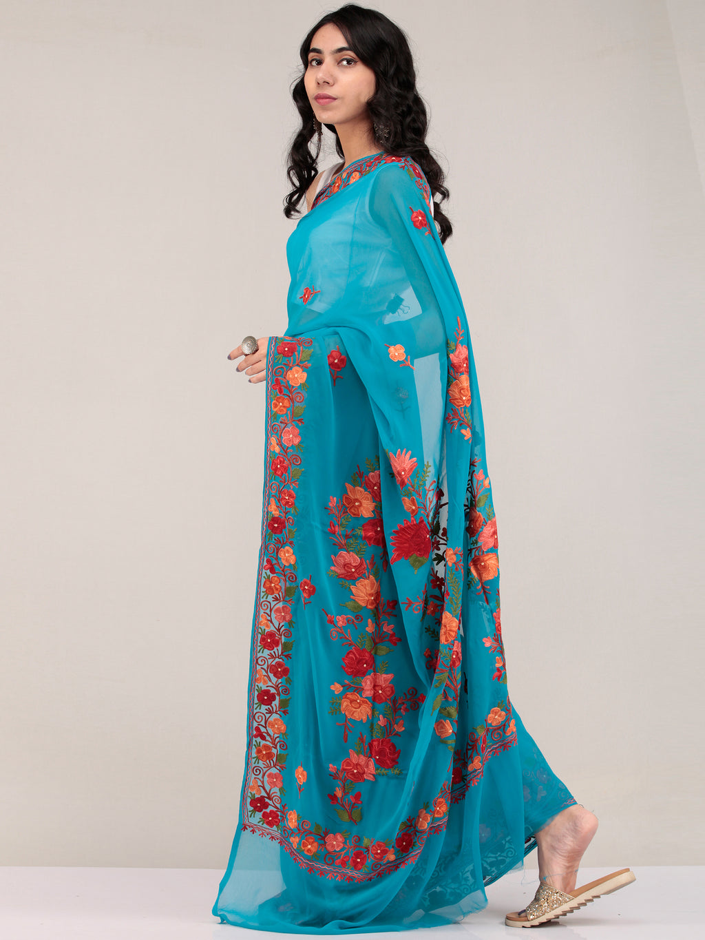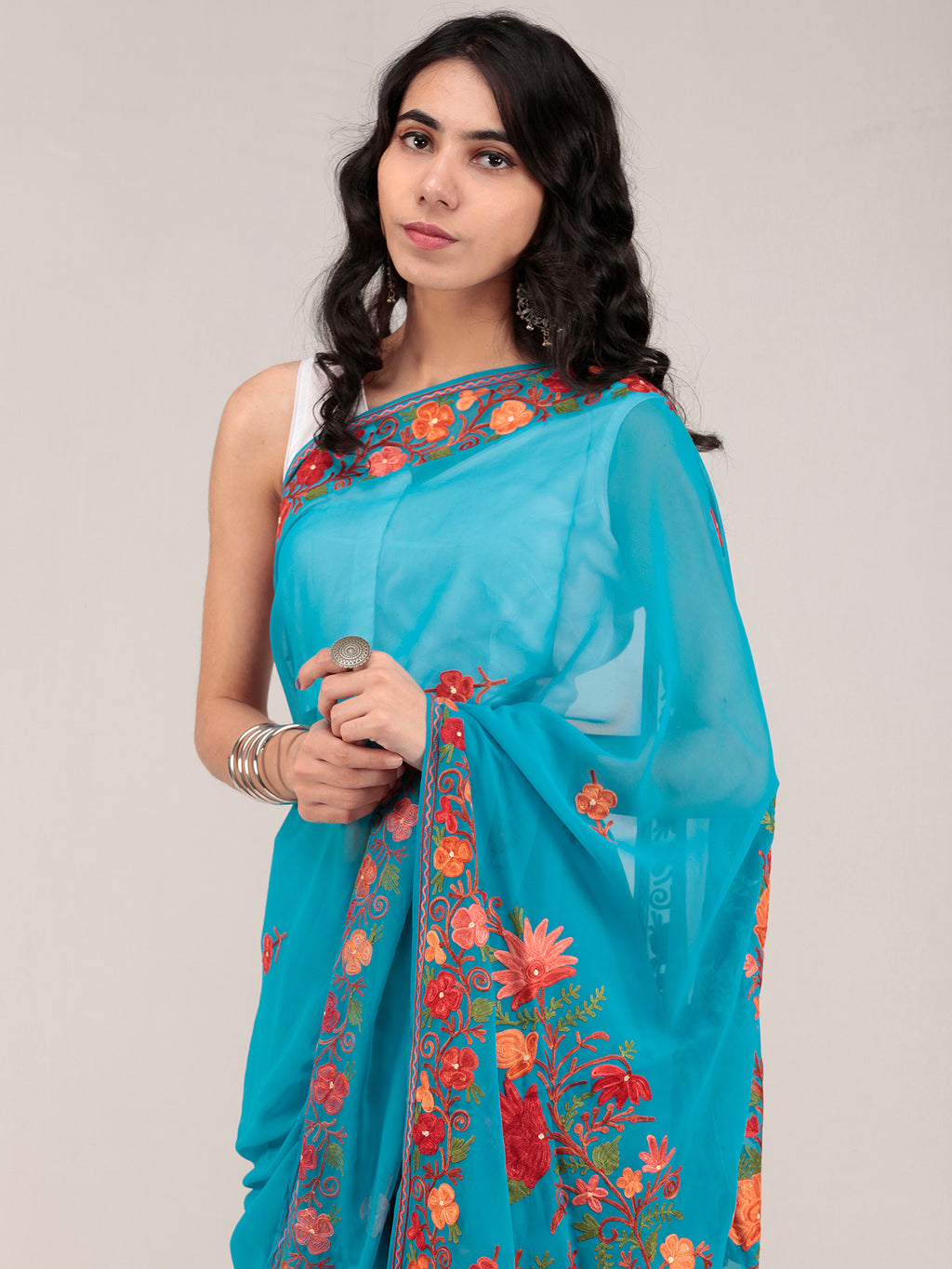 PRODUCT: Embroidered Saree in traditional Aari Work of Kashmir