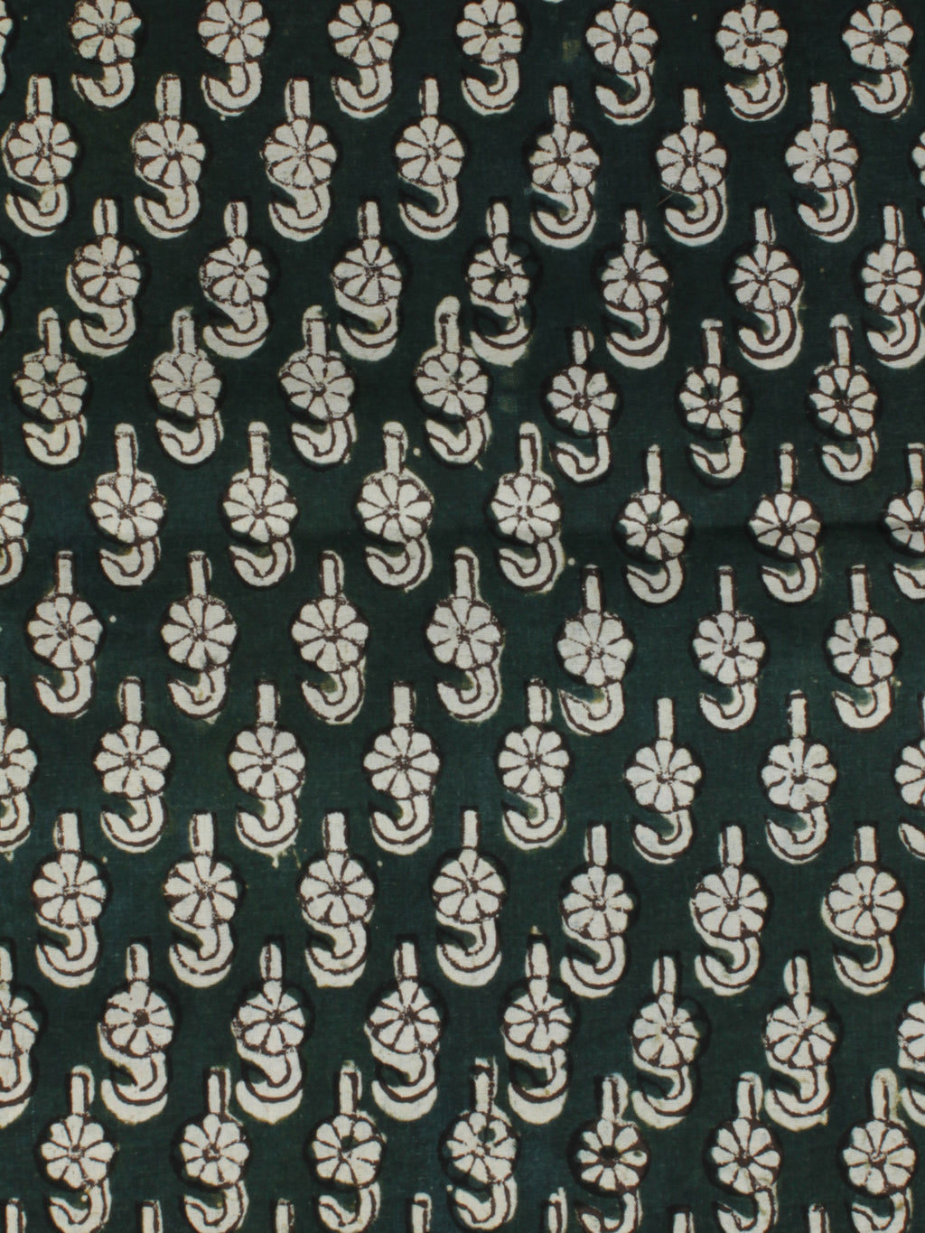 Bottle Green Ivory Ajrakh Hand Block Printed Cotton Fabric Per Meter - F003F2119