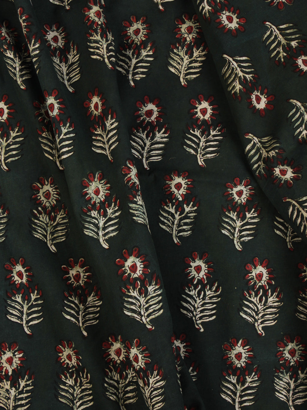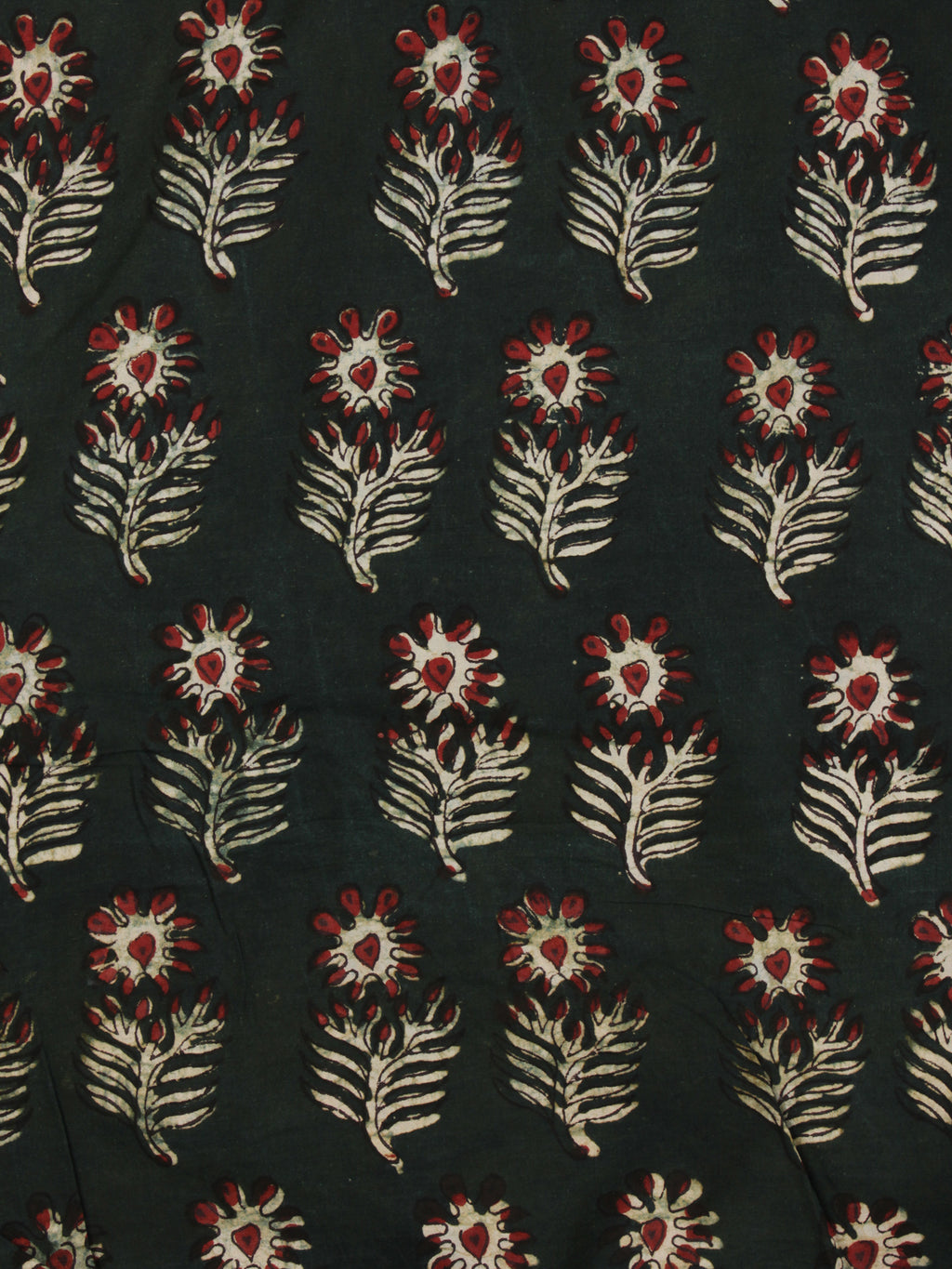 Bottle Green Ivory Red  Ajrakh Hand Block Printed Cotton Fabric Per Meter - F003F2108