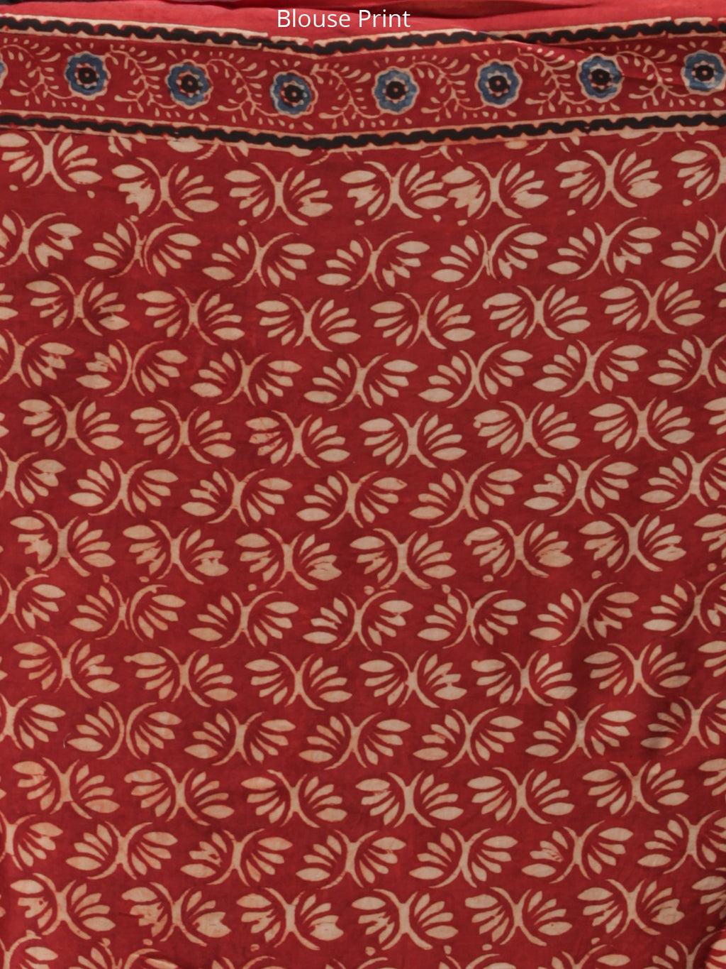 Red Indigo Black Ajrakh Hand Block Printed Modal Silk Saree in Natural Colors - S031704286