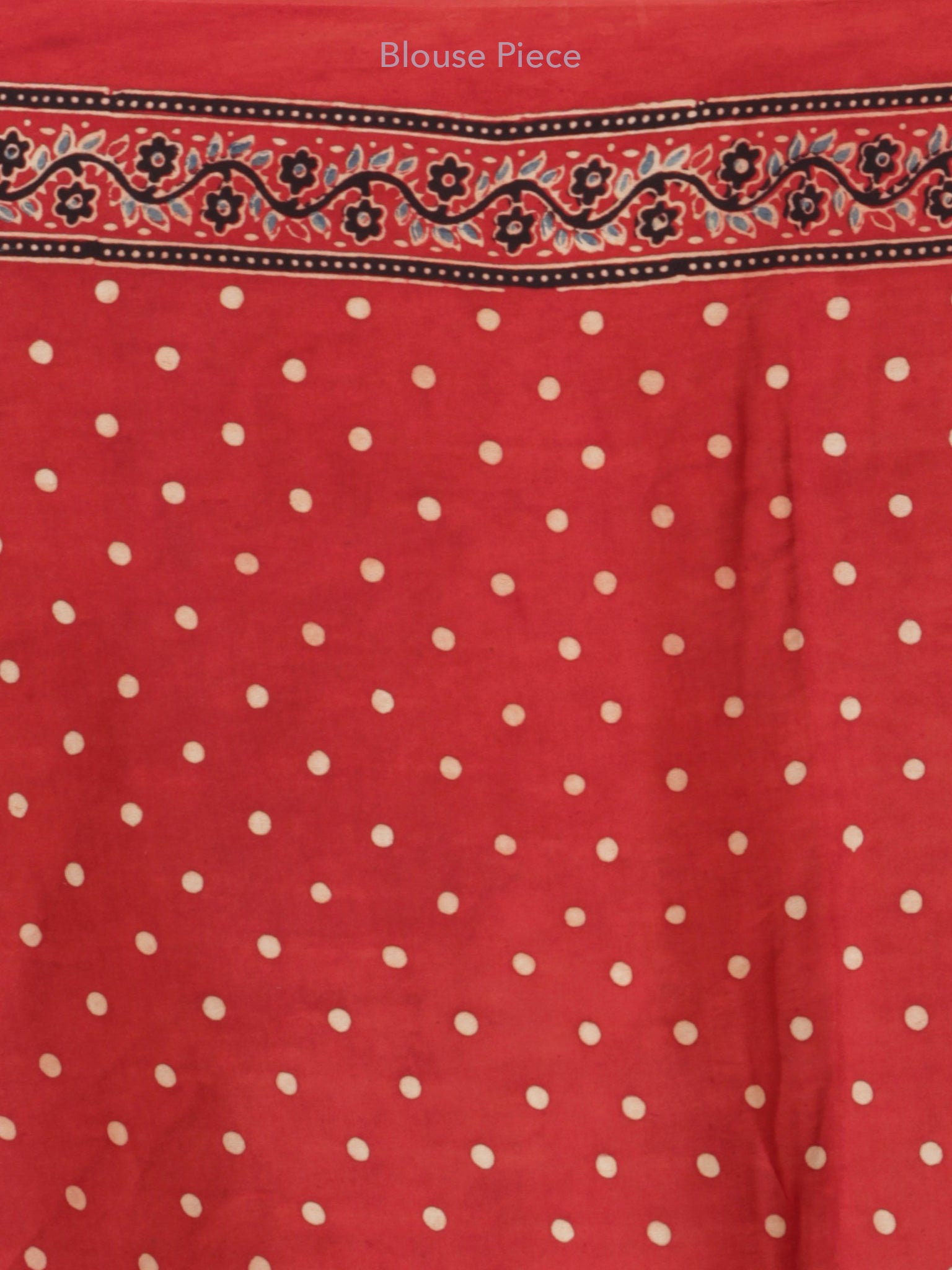 Crimson Red Indigo Black Ajrakh Hand Block Printed Modal Silk Saree - S031704227