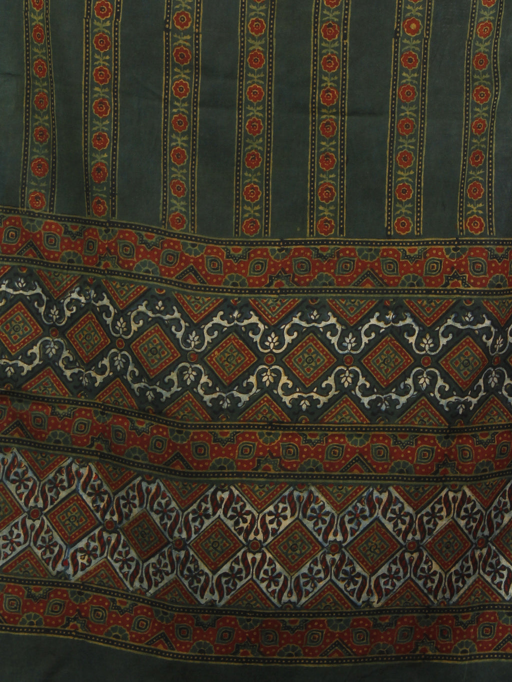 Dark Green Maroon Black Mughal Nakashi Ajrakh Hand Block Printed Cotton Stole - S63170132