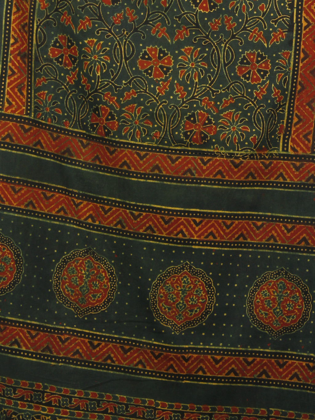 Dark Green Maroon Black Mughal Nakashi Ajrakh Hand Block Printed Cotton Stole - S63170147