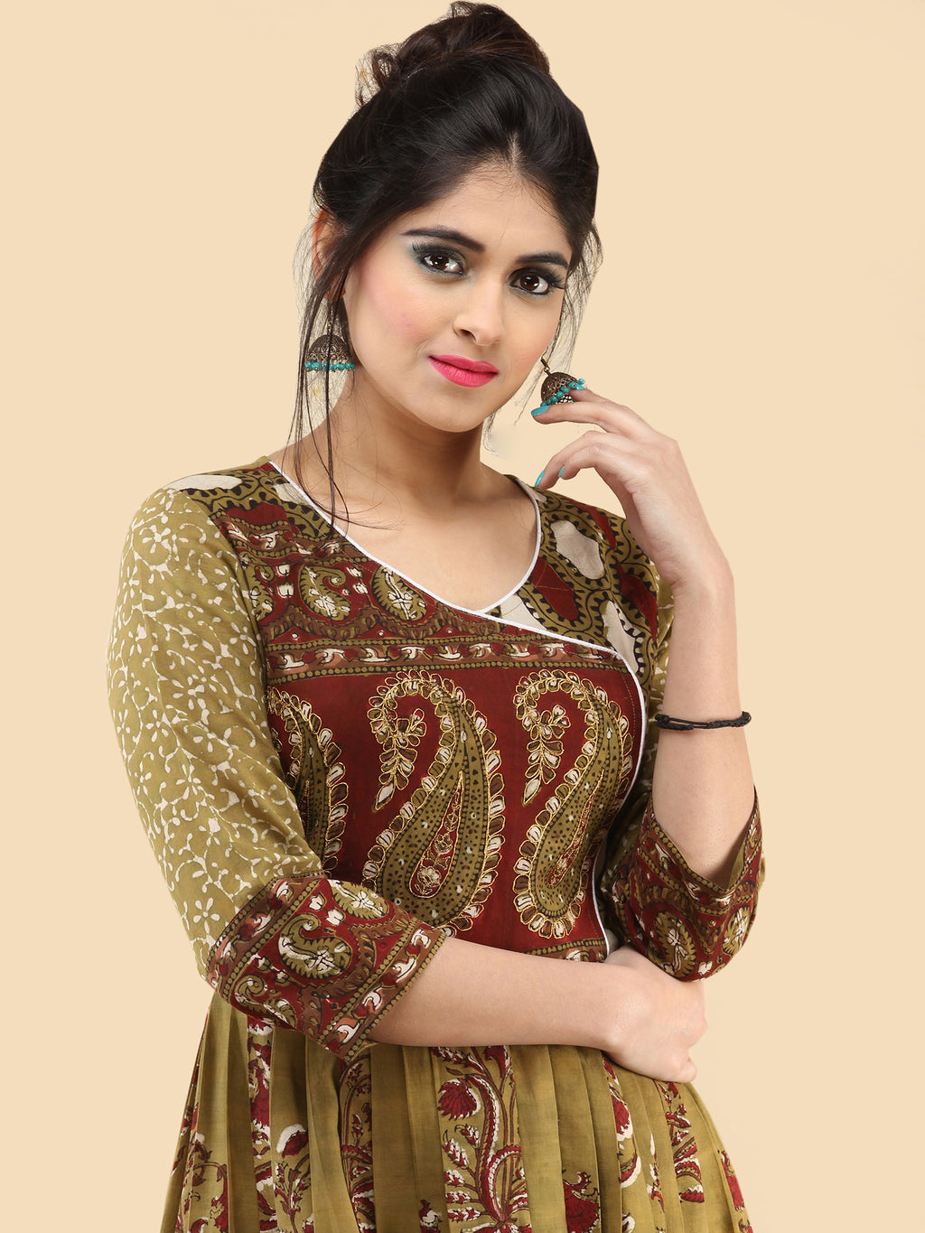 FABRIC/S:åÊPrinted - CottonåÊ åÊColors:åÊOlive Green, Maroon, Ivory