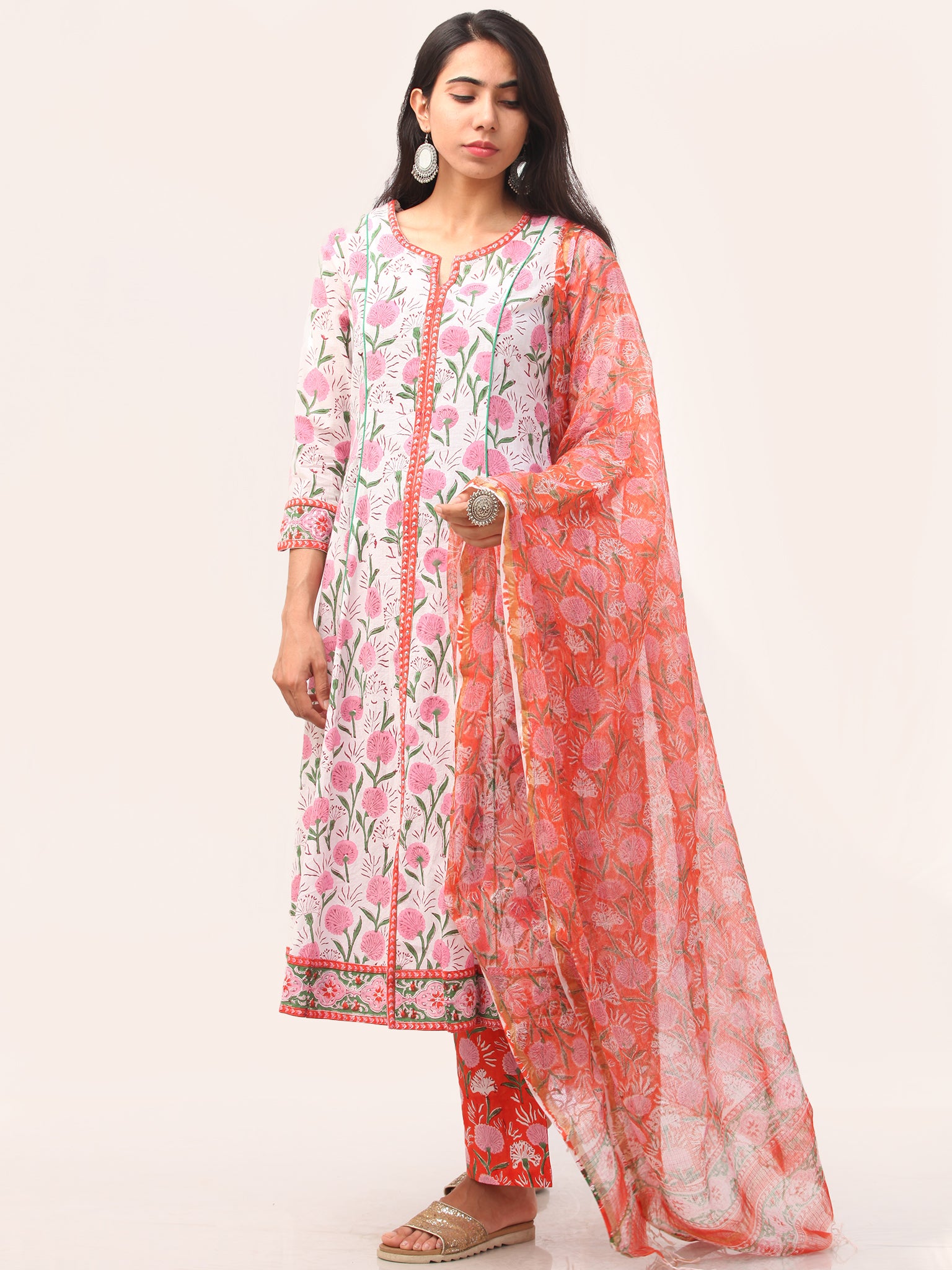 Fabric : Hand Block Printed. Kurta - Cotton. Pants - Cotton, Dupatta - Kota Doria