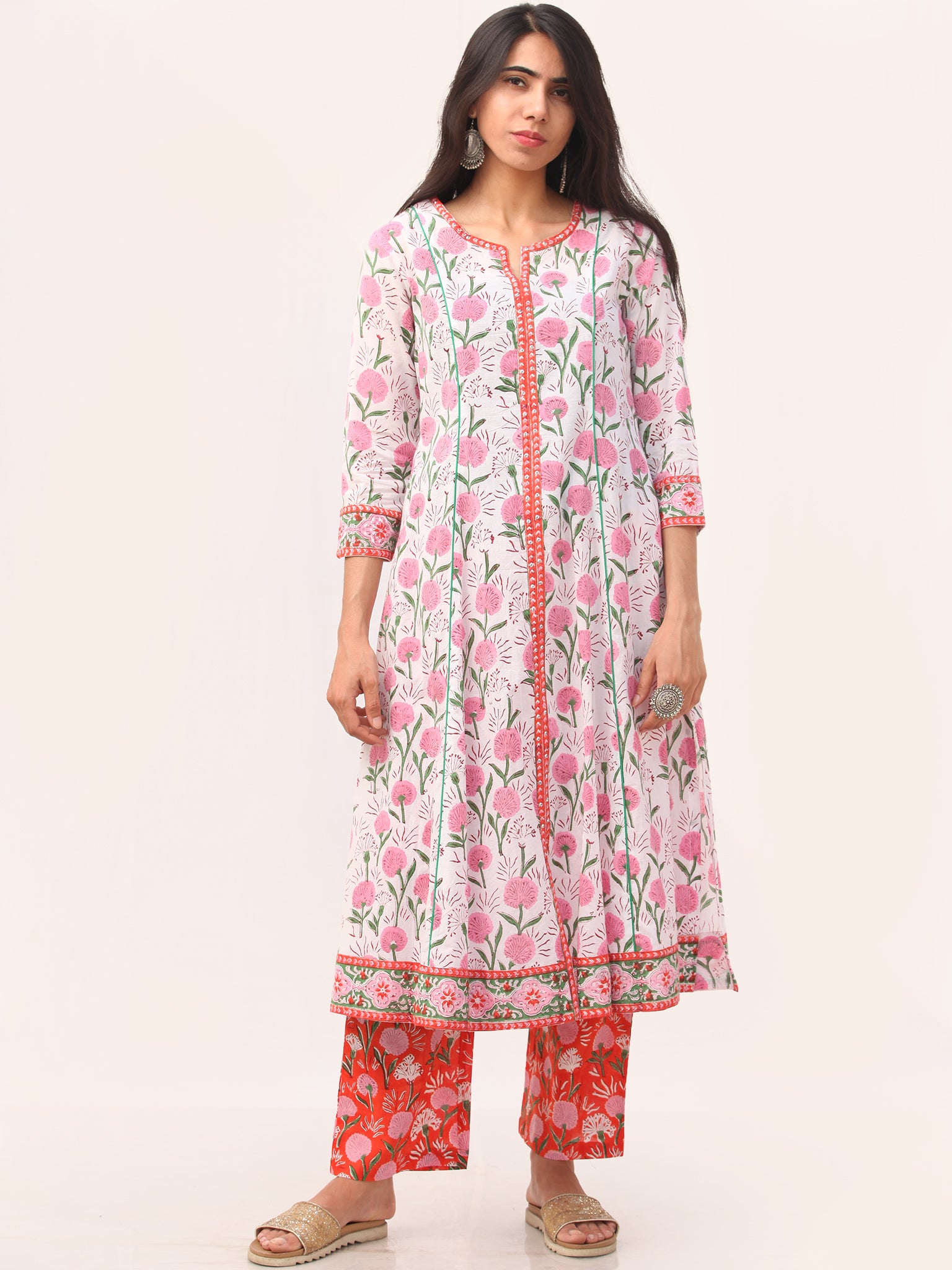 Product: This set contains Handcrafted Sanganeri Premium Cotton Kurta, 100% Cotton Pants and Kota Doria Dupatta.