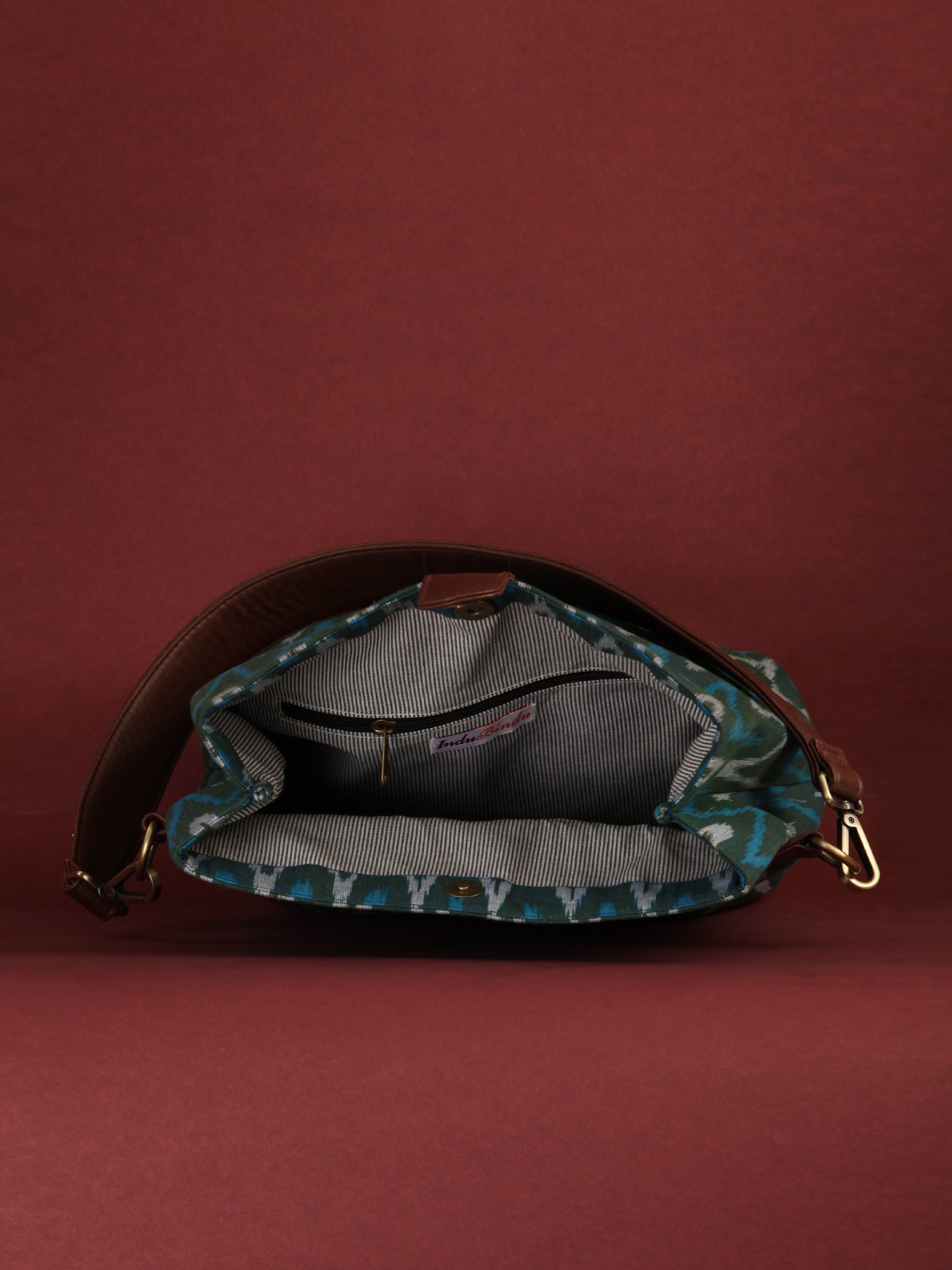 MATERIAL : Ikat Weaved Fabric, Vegan Leather, Poly Cotton Lining , other accessories.