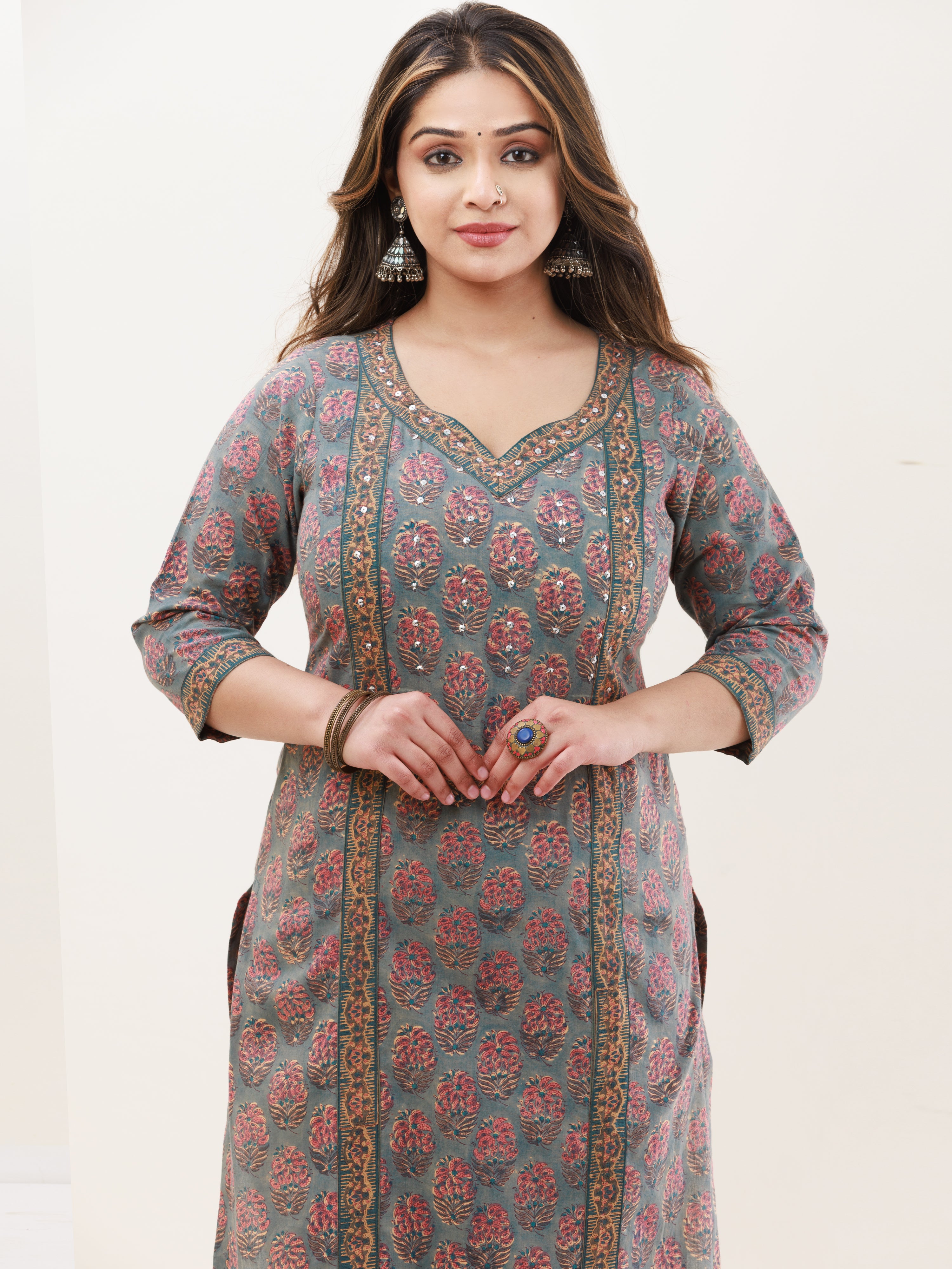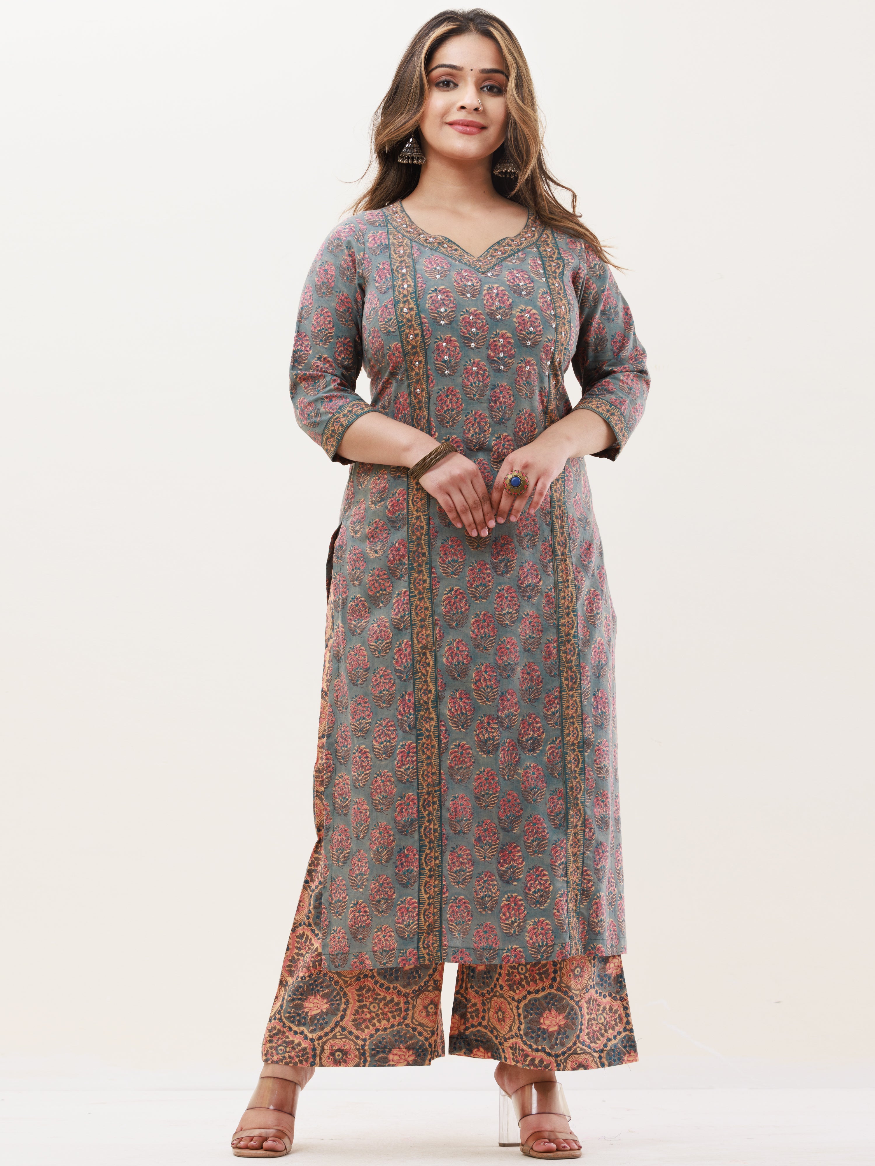 Product: Contains Hand Block Printed Cotton Kurta. Matching Pants/Bottoms and Dupatta are also available separately under BUY THE LOOK section.