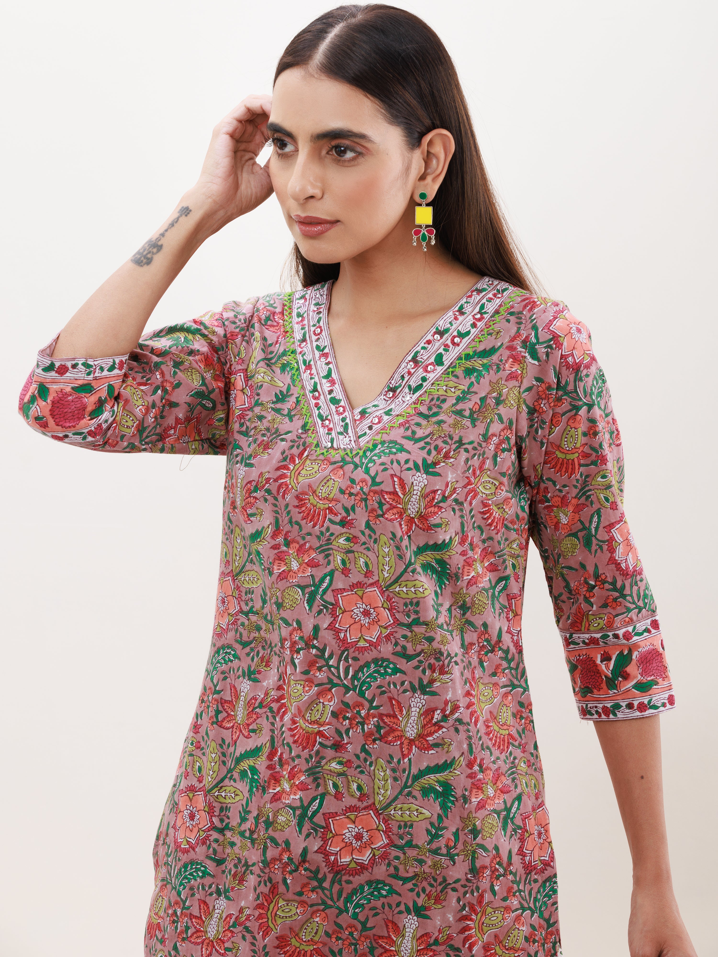 Product: This set contains Handcrafted Sanganeri Premium Cotton Kurta, 100% Cotton Pants and Kota Doria Dupatta.