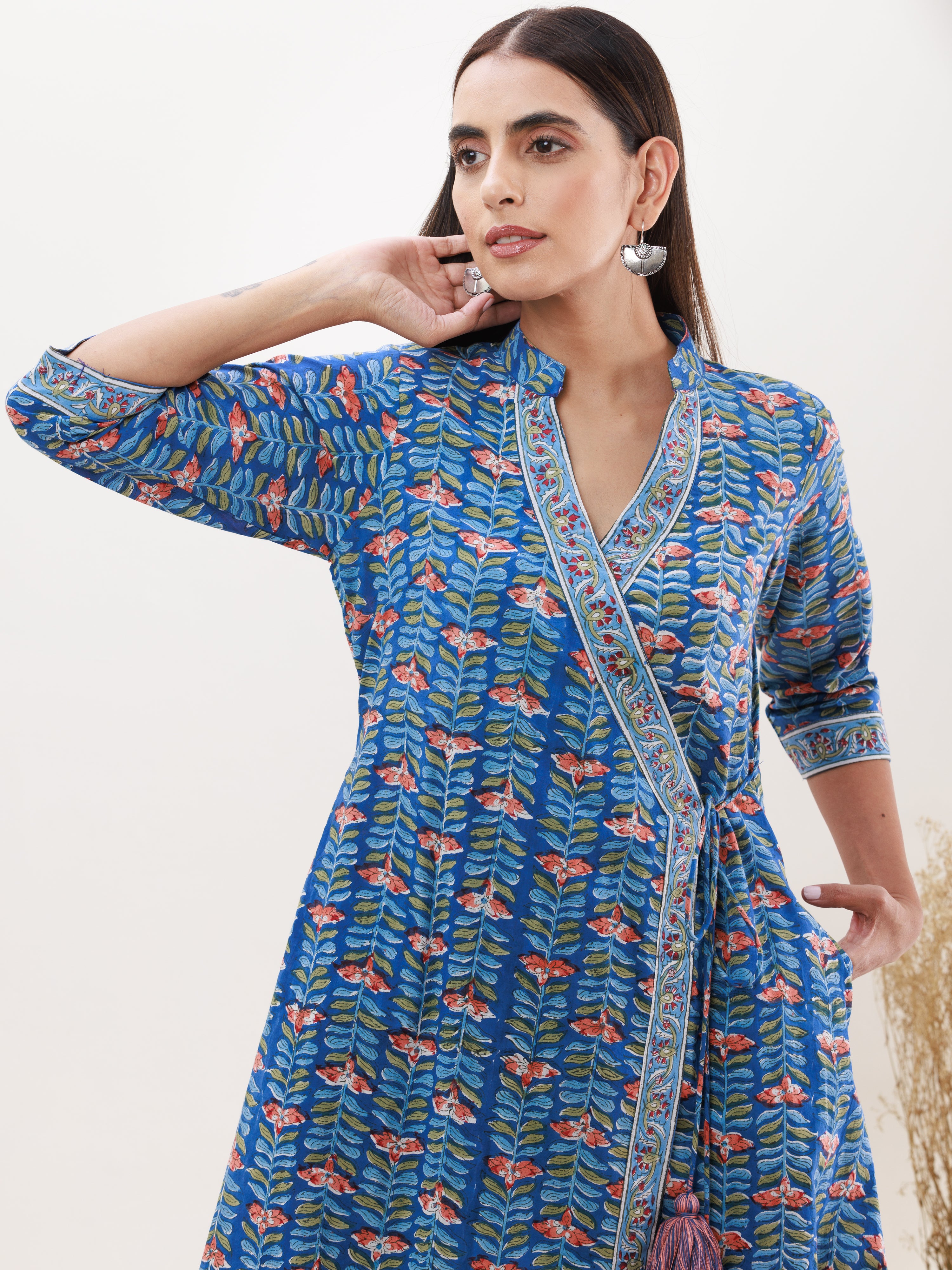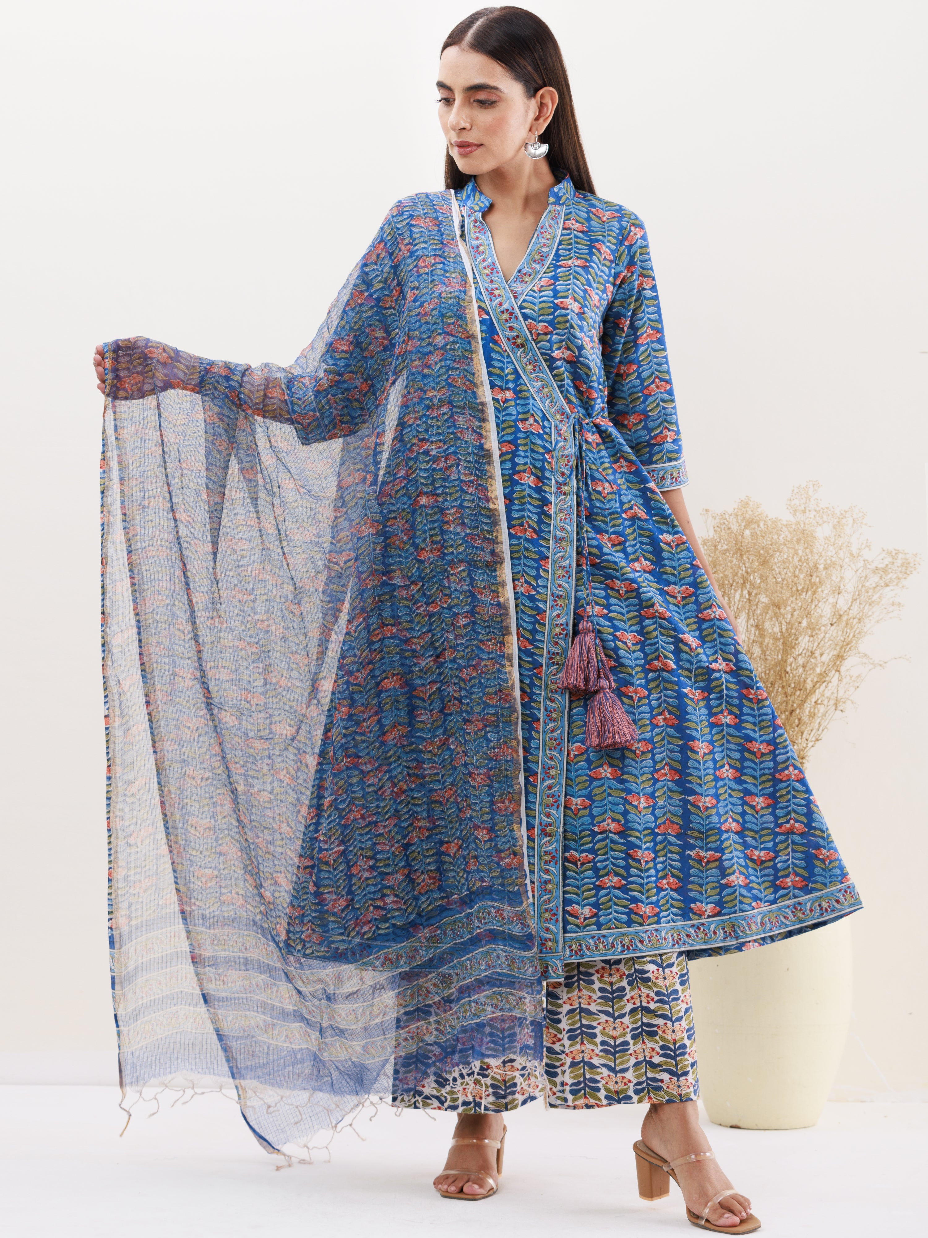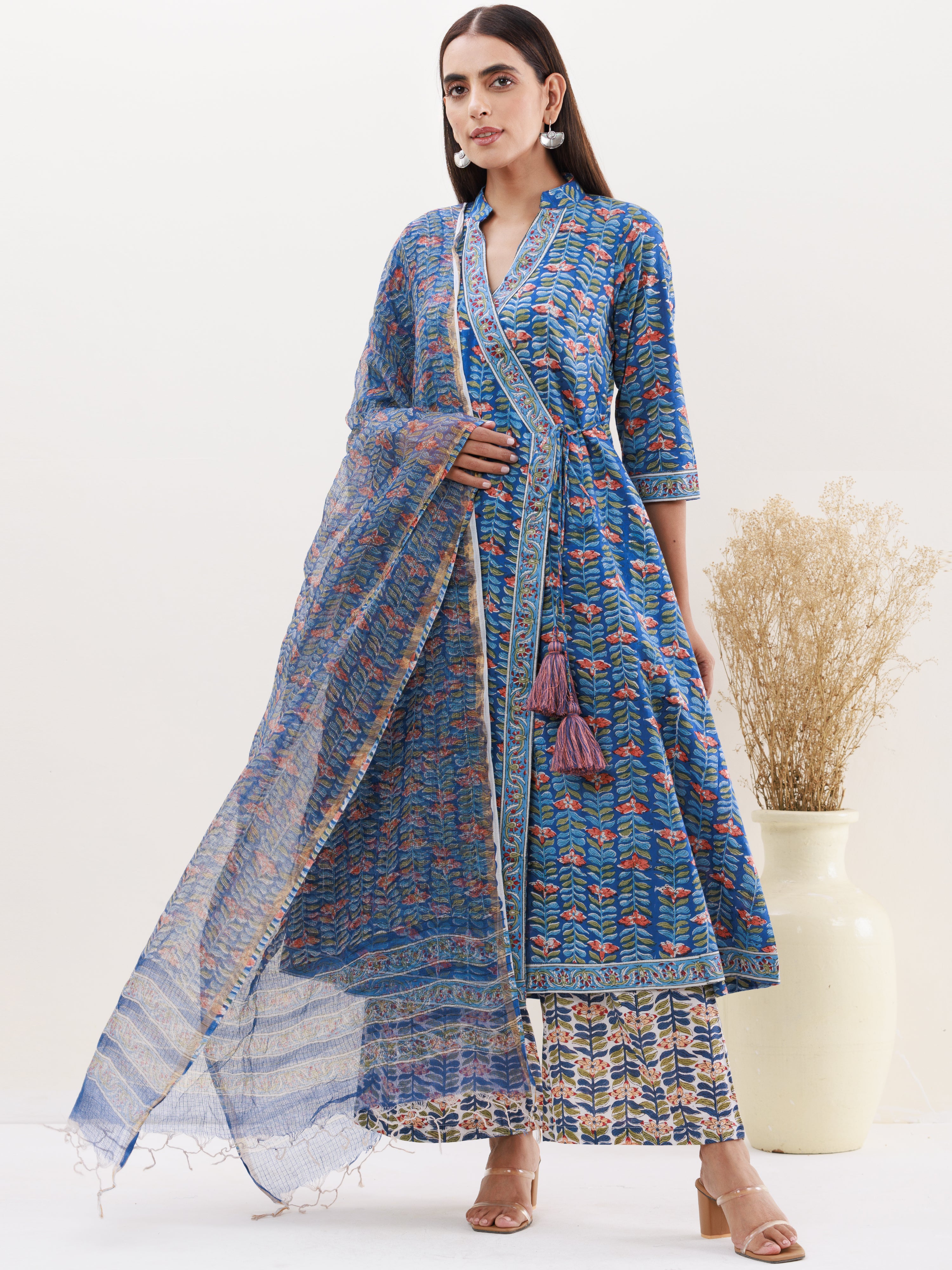 Product: This set contains Handcrafted Sanganeri Premium Cotton Kurta, 100% Cotton Pants and Kota Doria Dupatta.