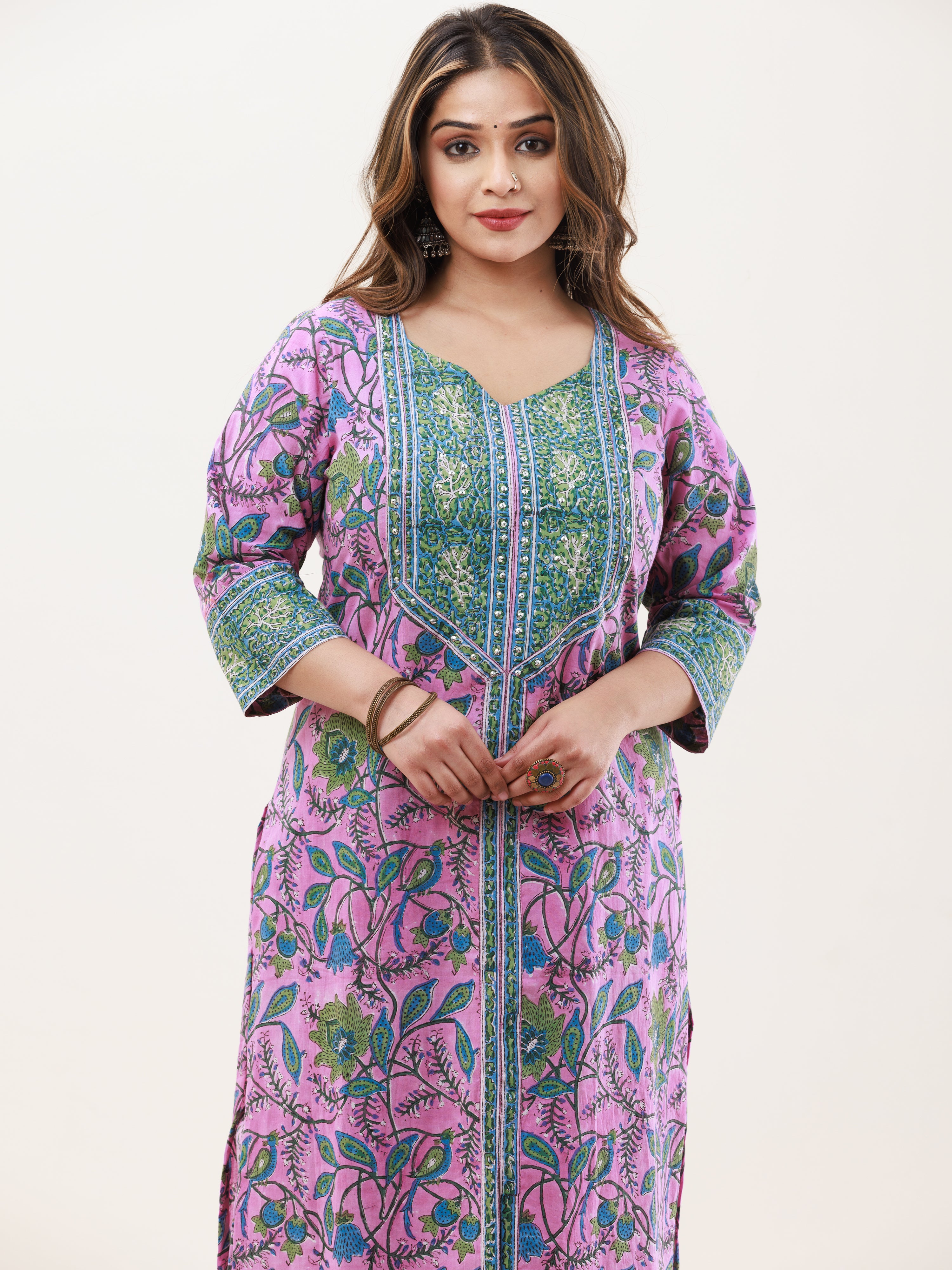 Product: Contains Hand Block Printed Cotton Kurta. Matching Pants/Bottoms and Dupatta are also available separately under BUY THE LOOK section.