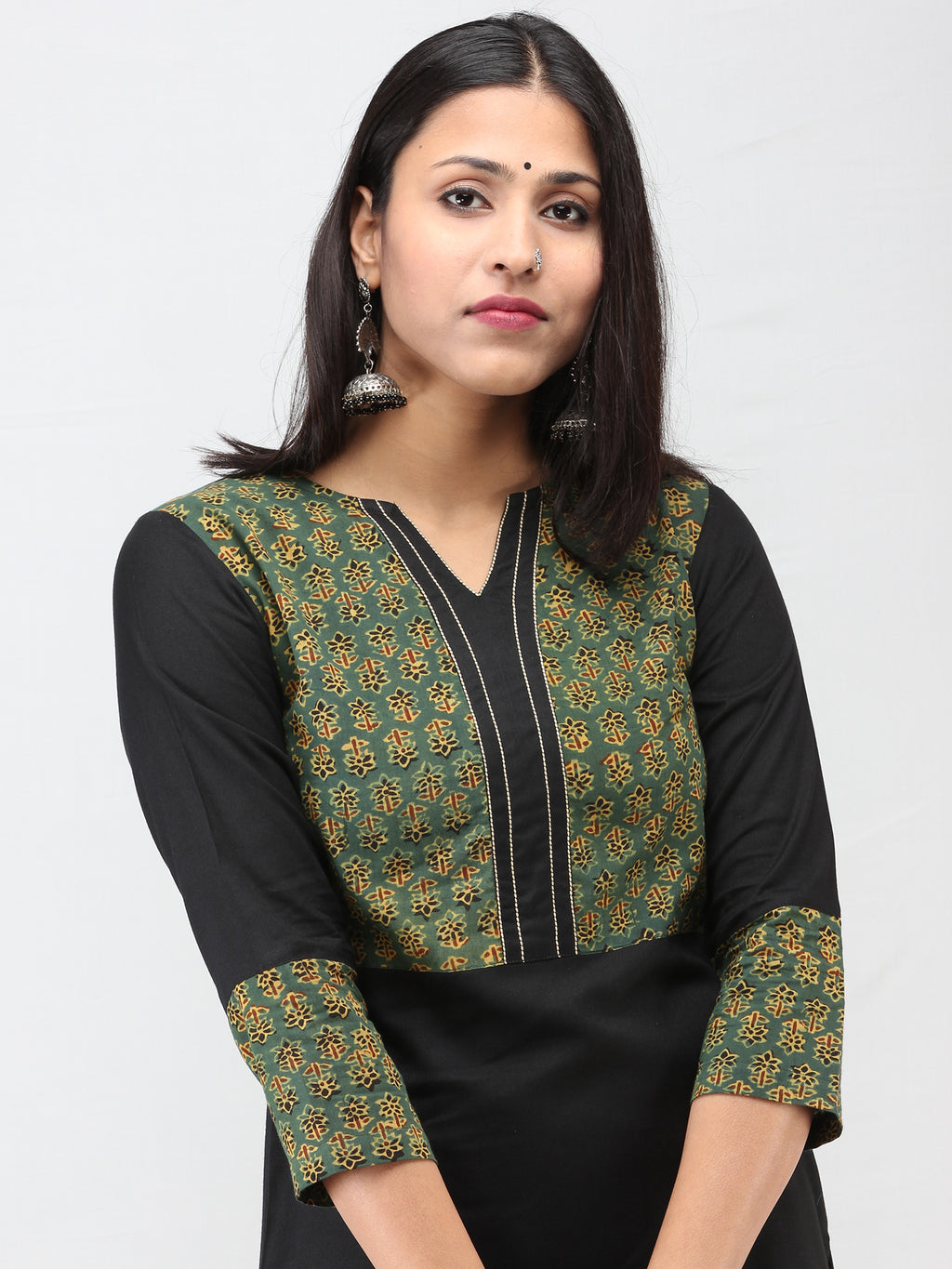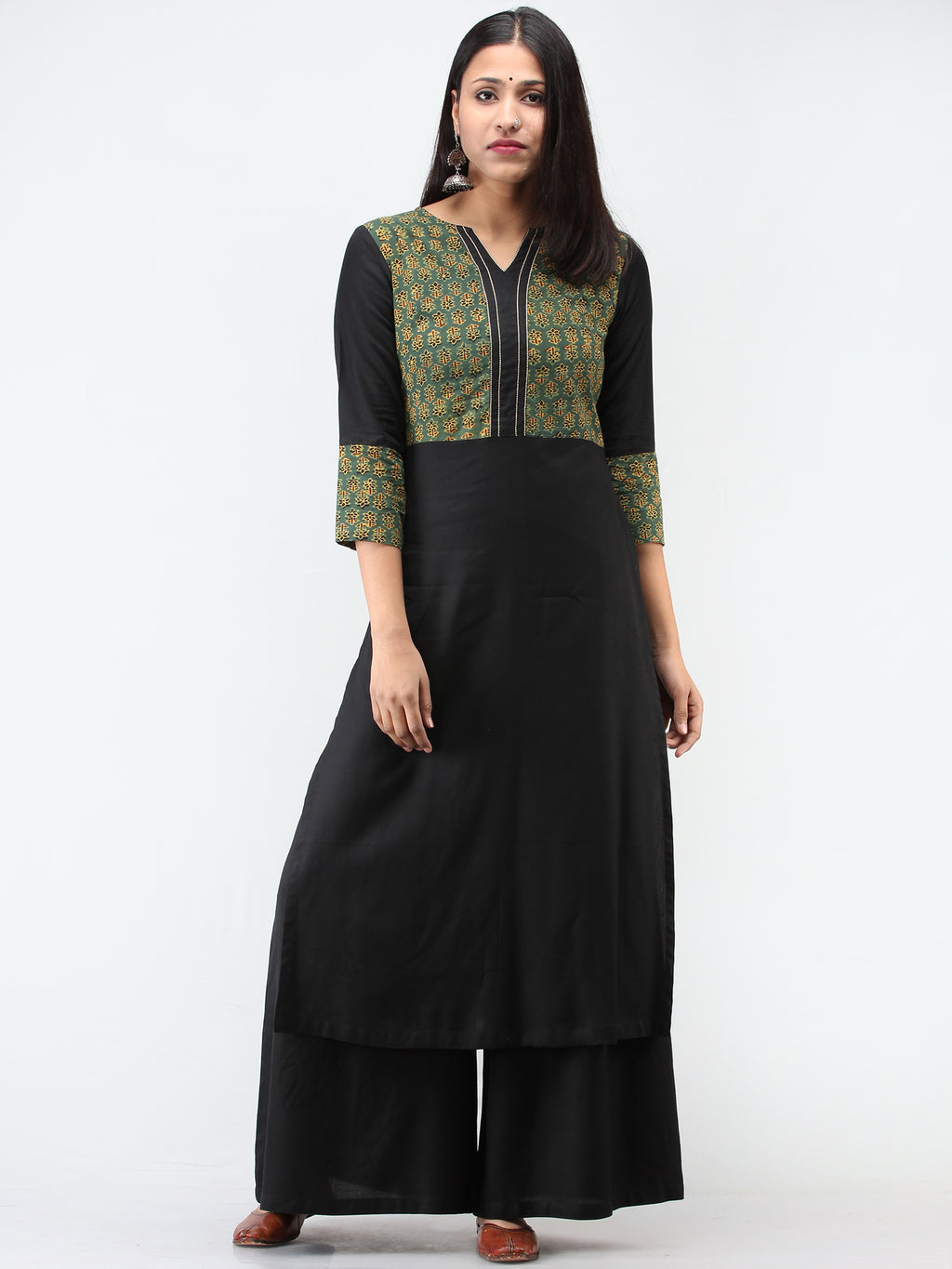 Green Black Ajrakh Hand Block Printed Kurta - K213F1534