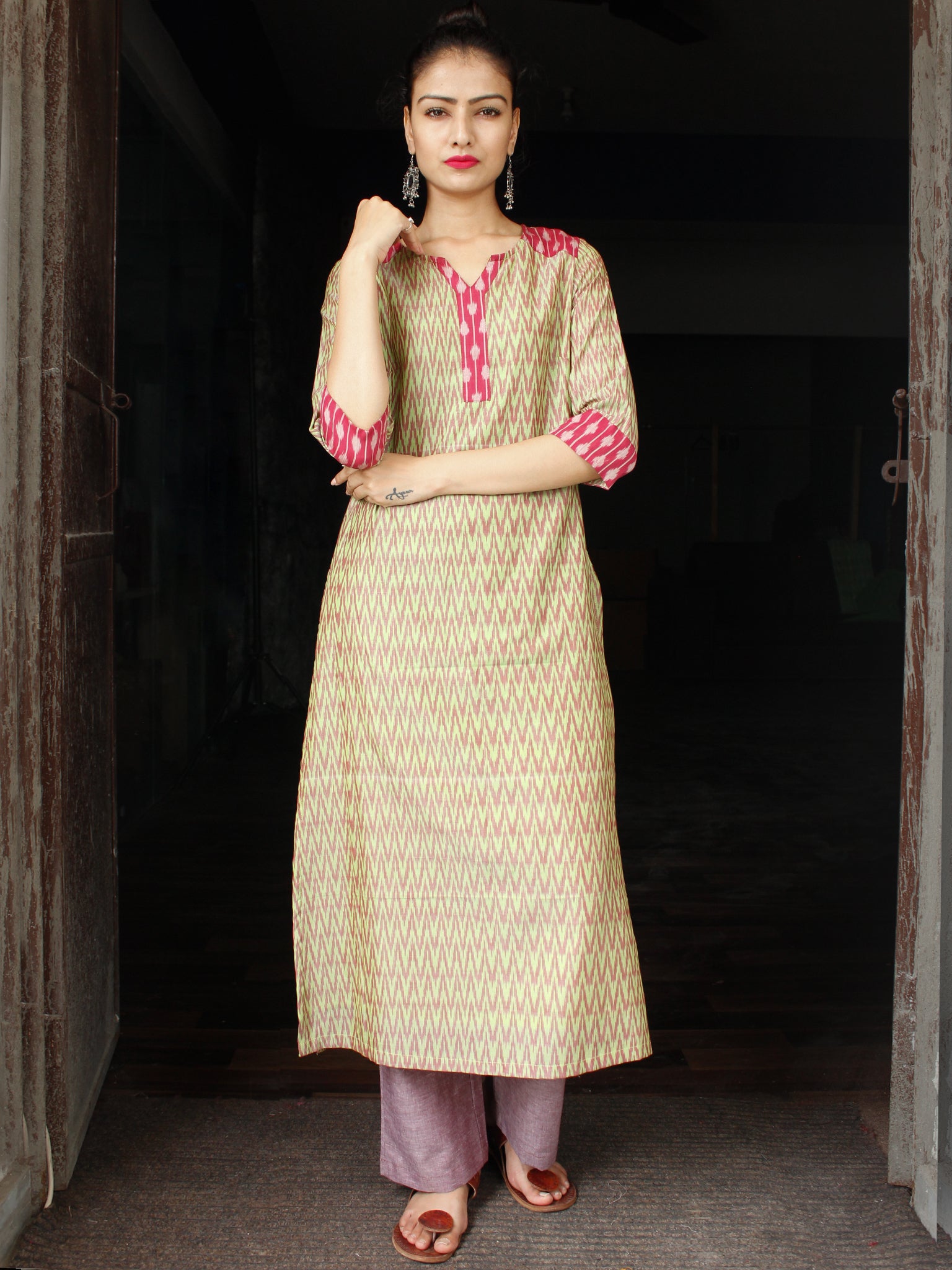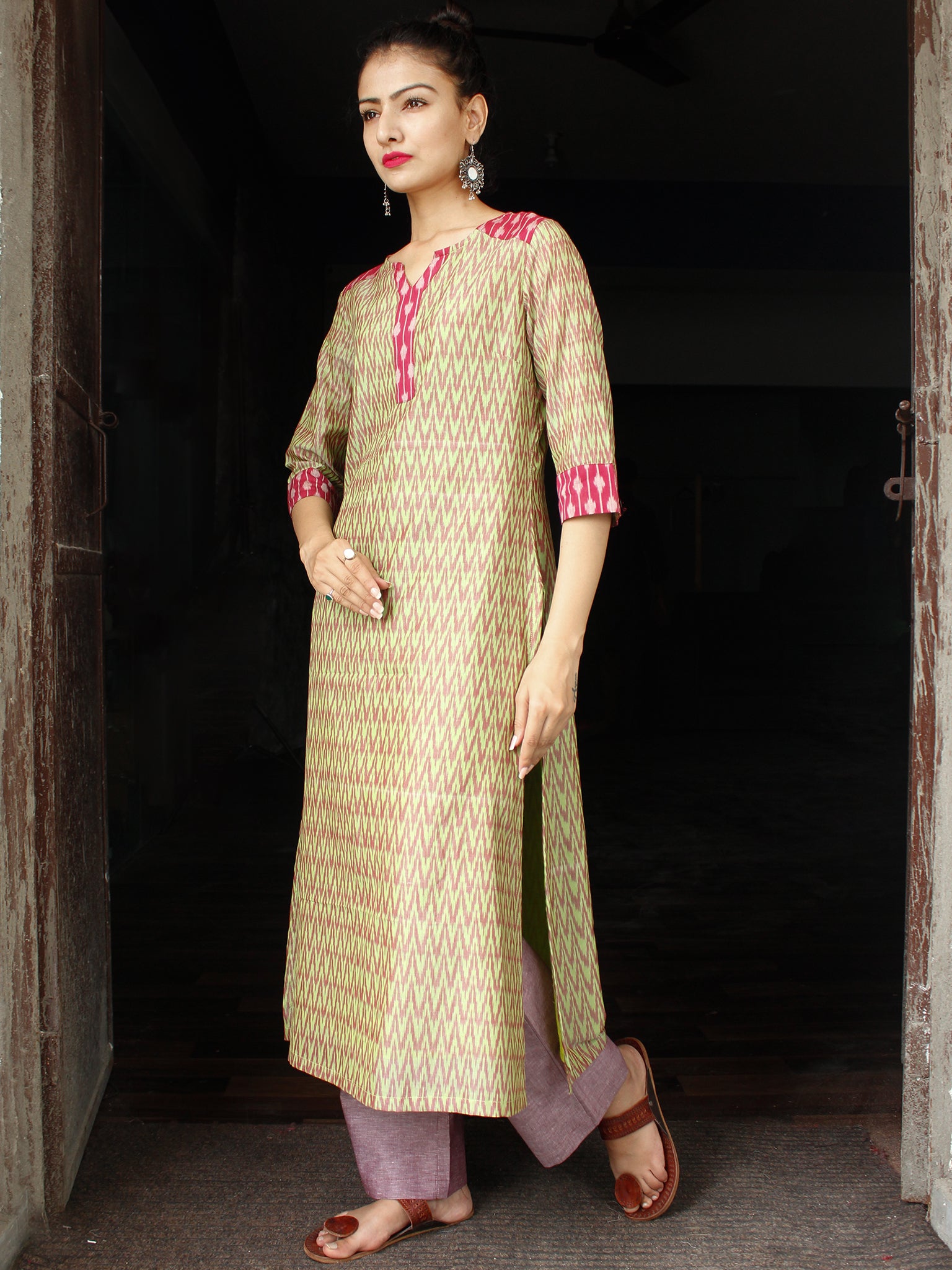 PRODUCT: This Set Contains Kurta and Straight Pant . The fabric of this dress is 100% pure cotton, fully hand-woven in Ikat style of dyeing.