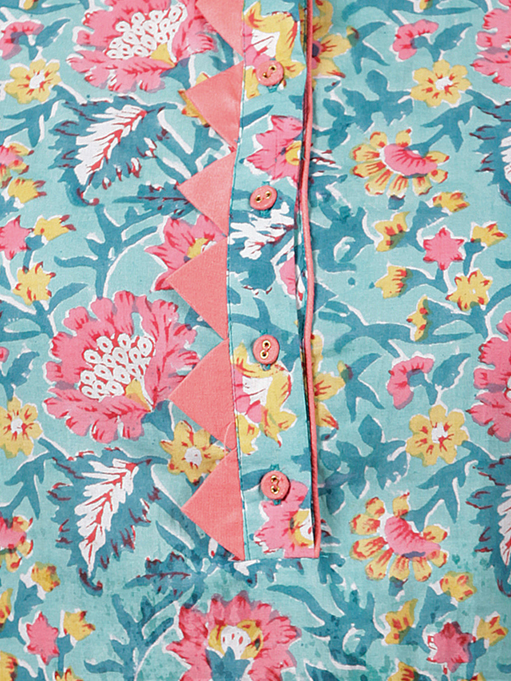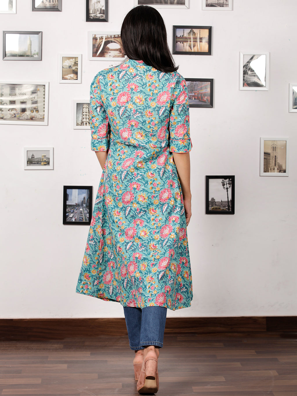 Green Pink Yellow Hand Block Printed Kurta - K82F1486