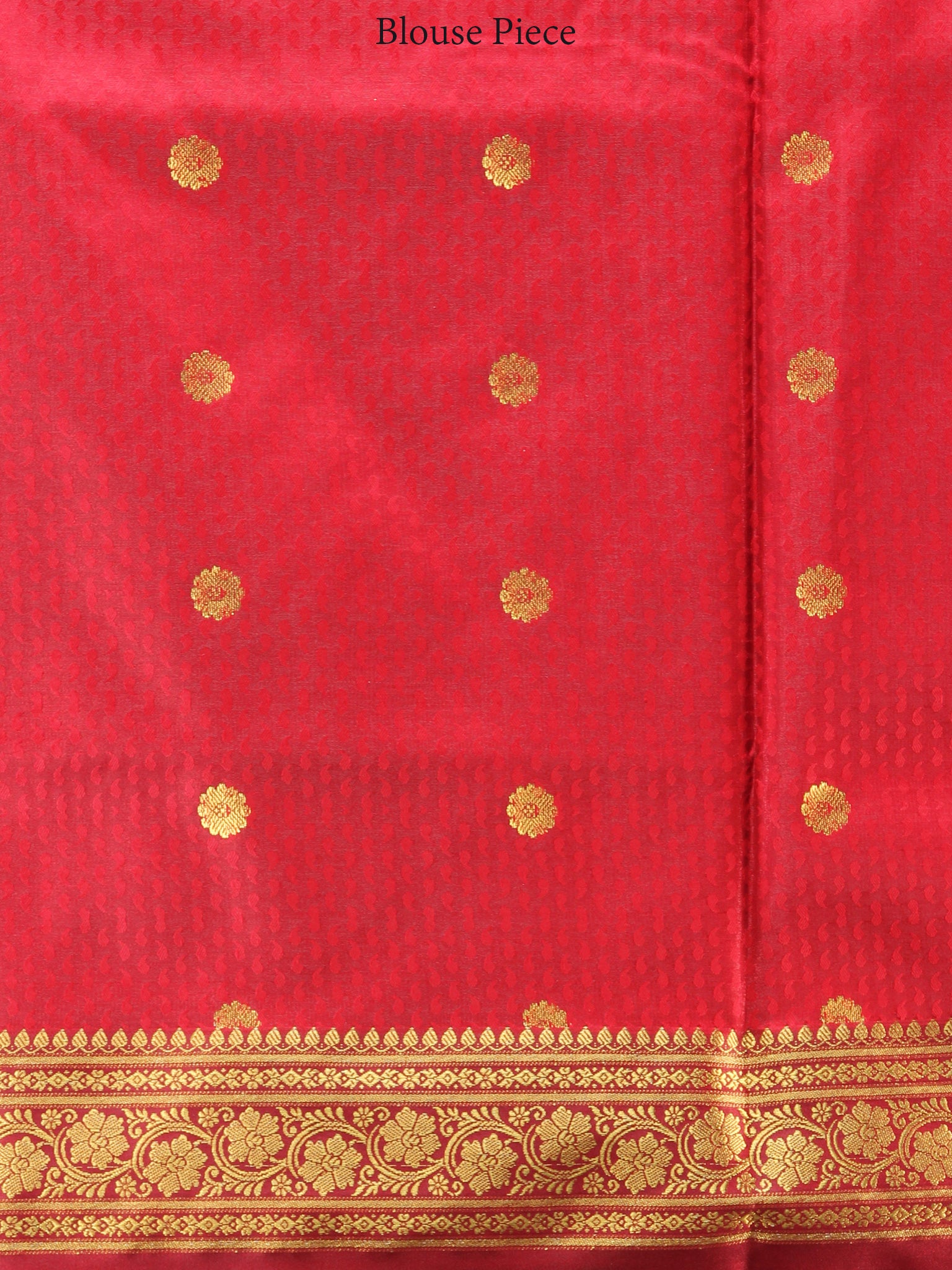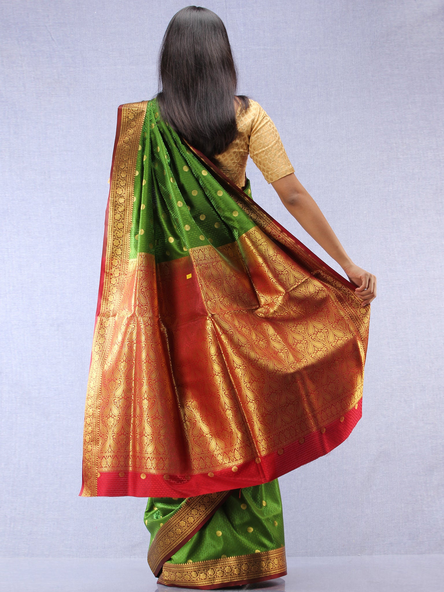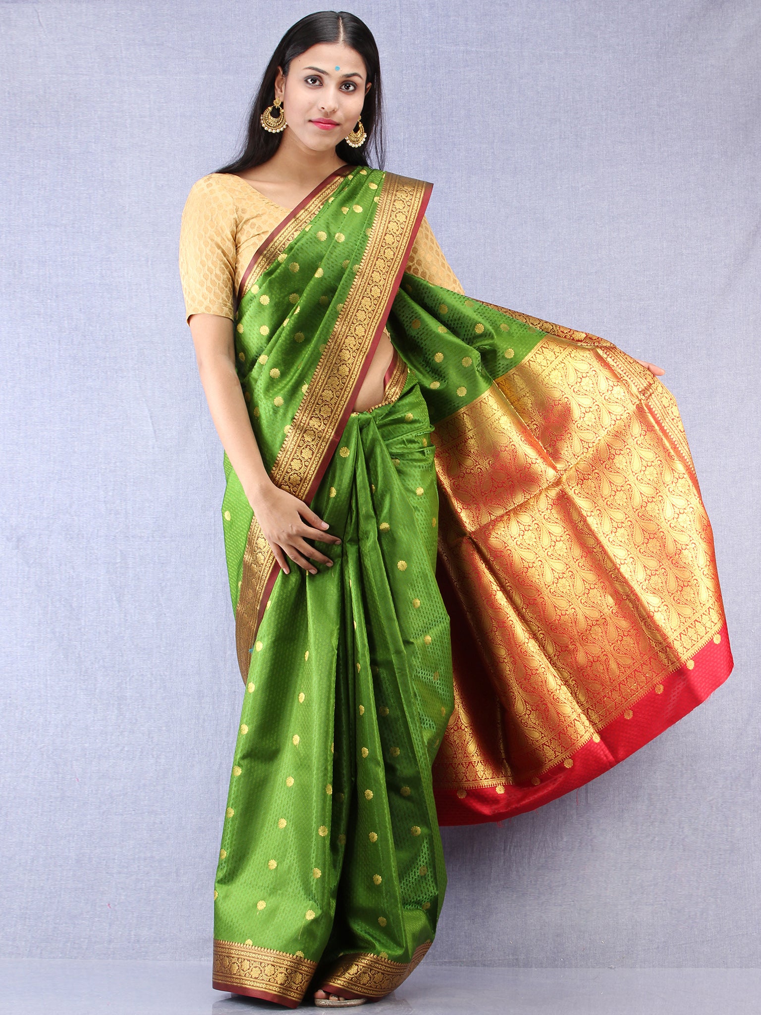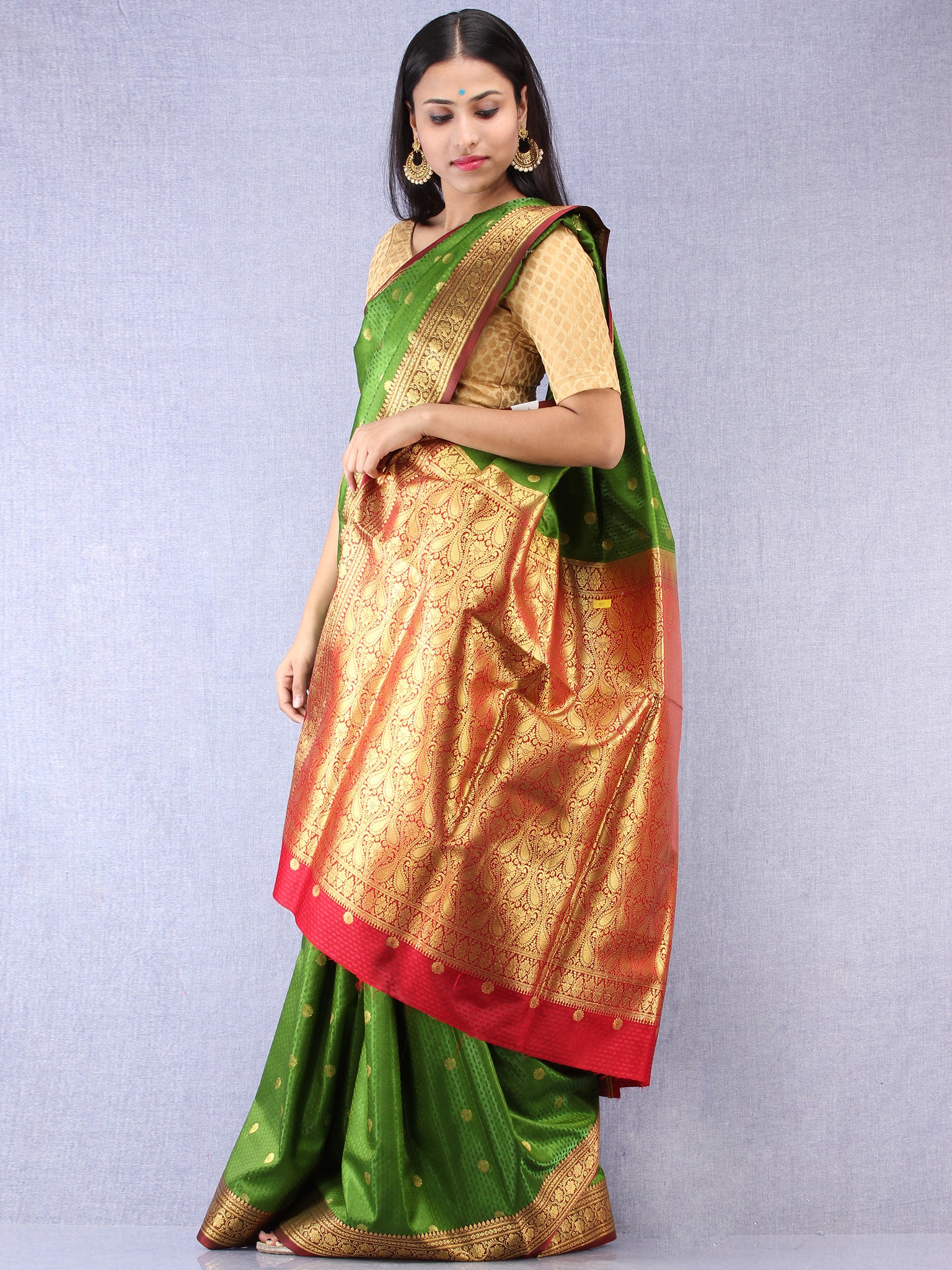 Banarasee Art Silk Self Weave Saree With Zari Work - Green Red & Gold - S031704341
