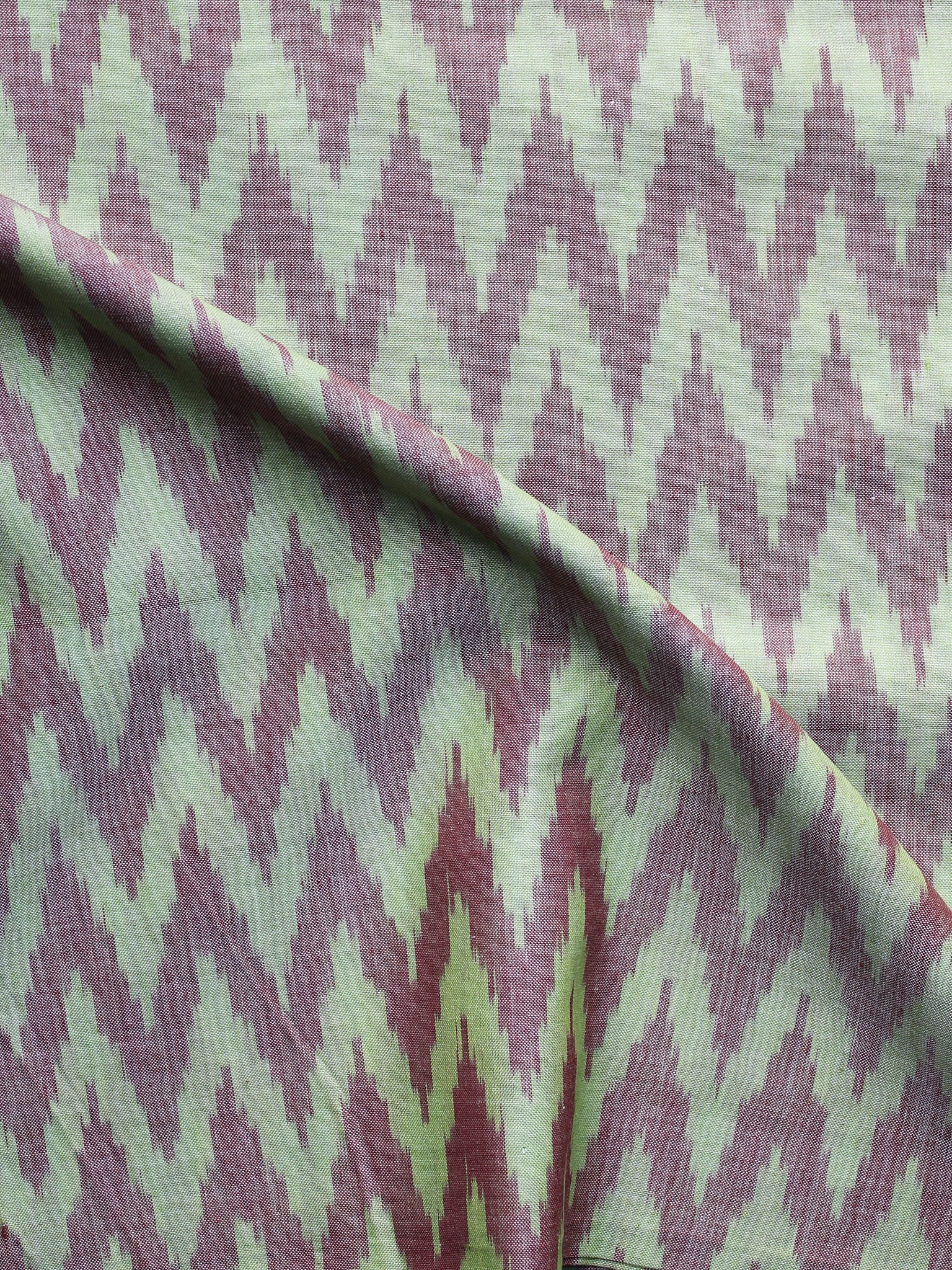 Green Wine Red Pochampally Hand Weaved Ikat Mercerised Fabric Per Meter - F003F1271