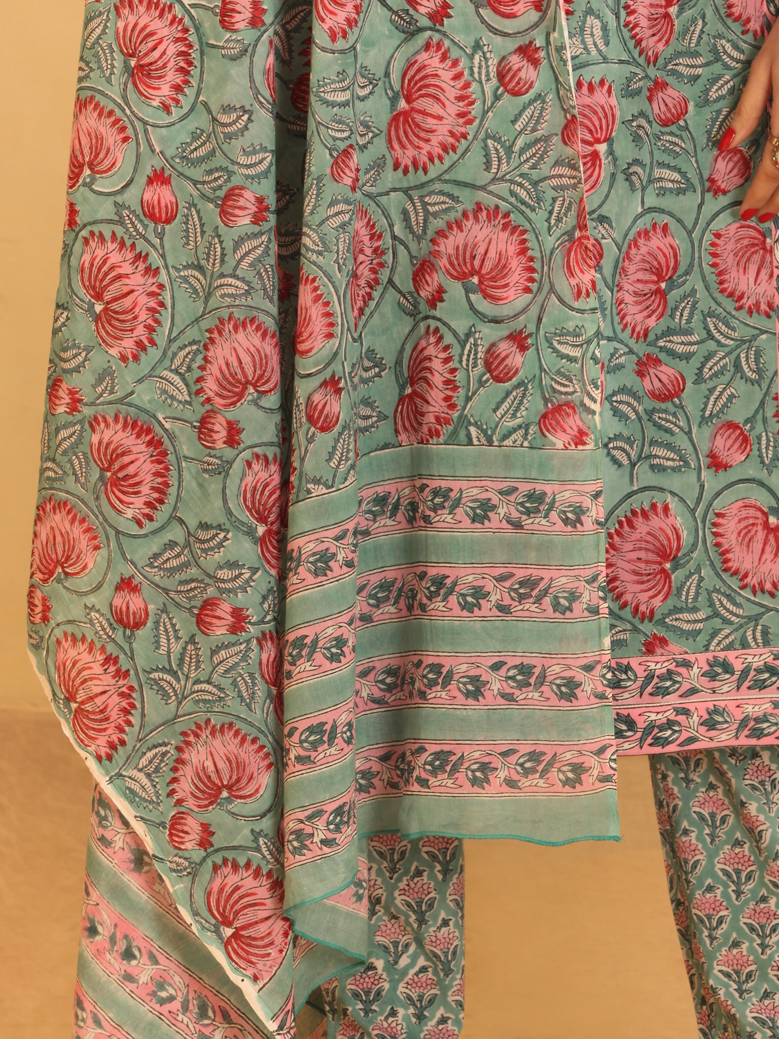 Fabric : Hand Block Printed. Kurta - Cotton. Pants - Cotton, Dupatta - Cotton