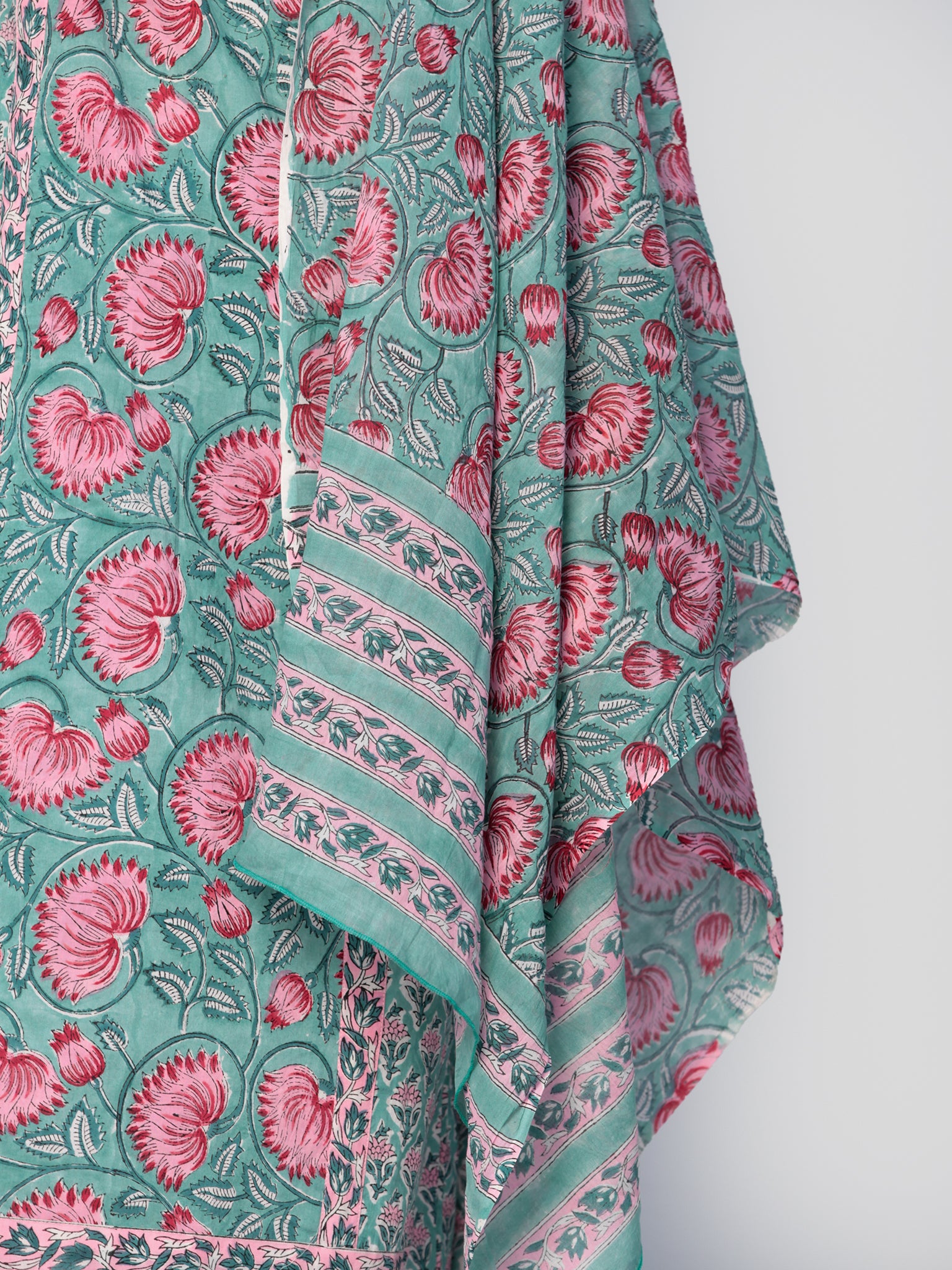 Product : Contains Sanganeri Hand Block Printed Cotton mul Dupatta. Matching Kurta and Pants are also available separately under BUY THE LOOK section.