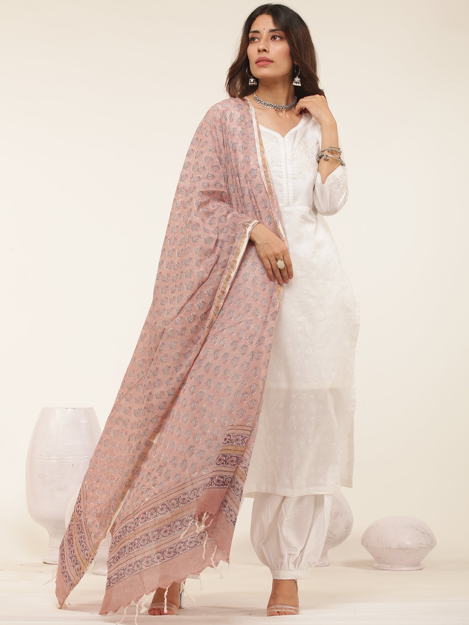 Product : Contains Sanganeri Hand Block Printed Cotton mul Dupatta. Matching Kurta and Pants are also available separately under BUY THE LOOK section.