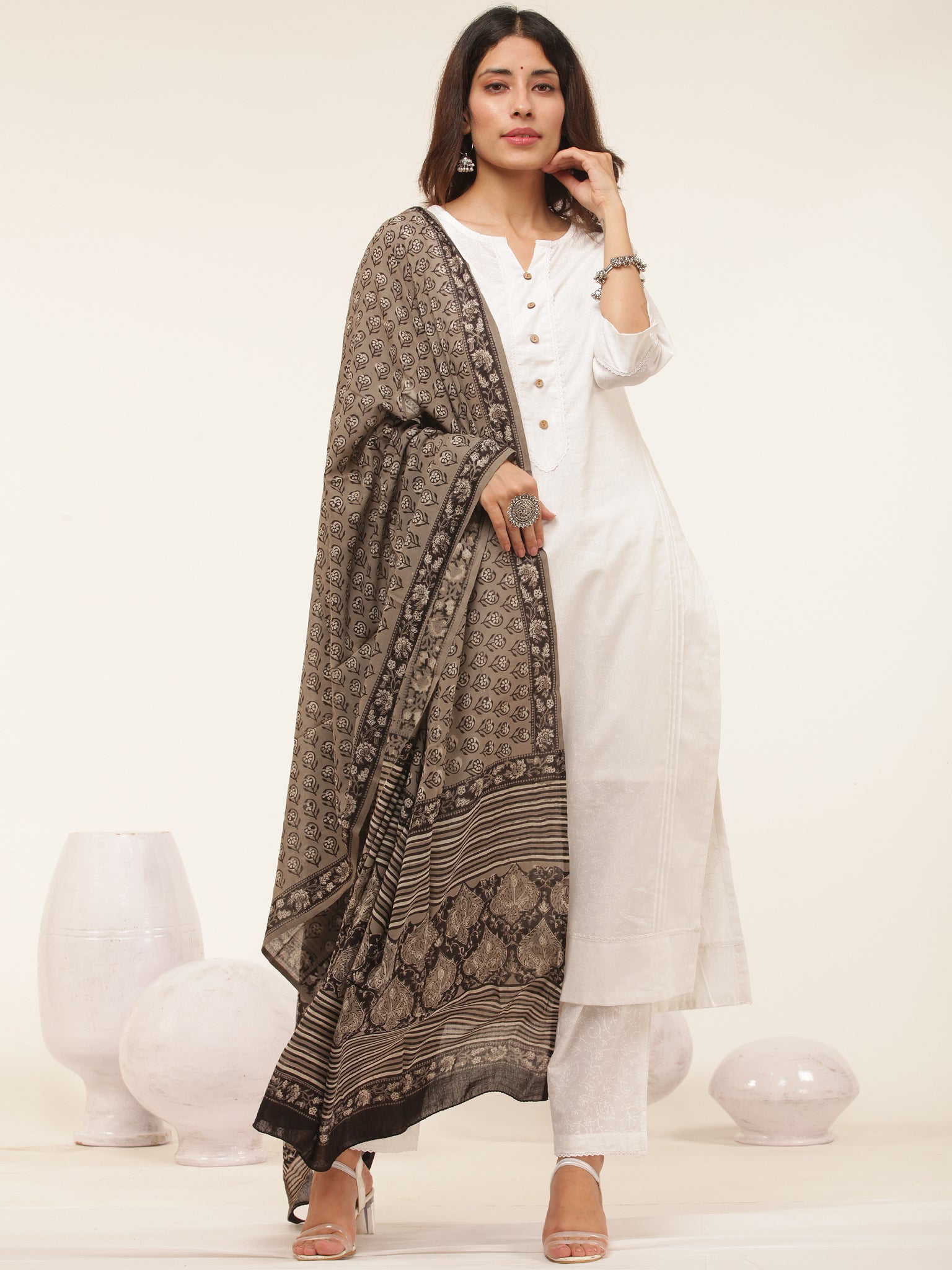 Product : Contains Sanganeri Hand Block Printed Cotton mul Dupatta. Matching Kurta and Pants are also available separately under BUY THE LOOK section.
