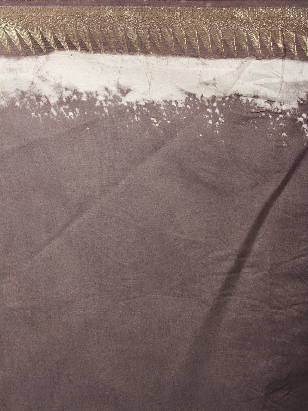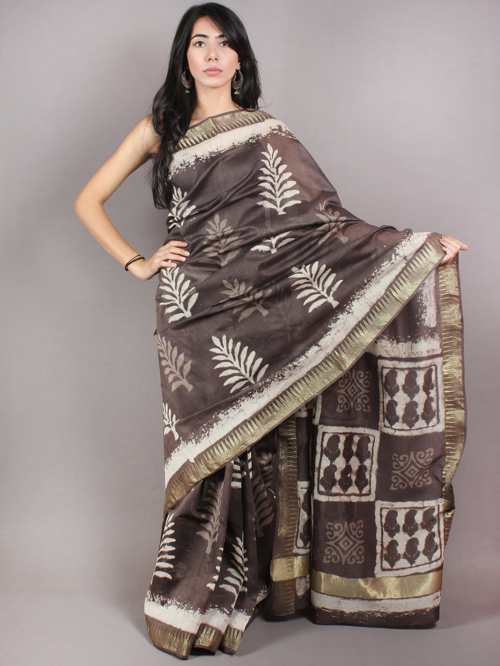 Brown Beige Ivory Hand Block Printed in Natural Colors Chanderi Saree With Geecha Zari Border - S03170681