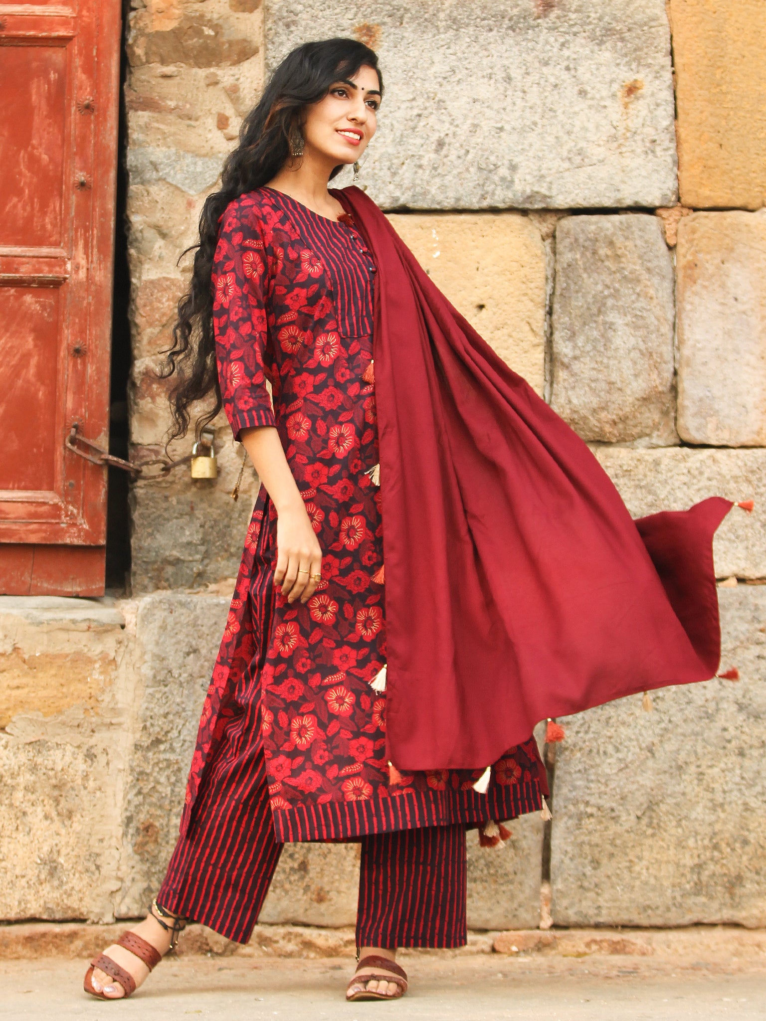 FABRIC/S: Kurta - Cotton, Palazzo - Cotton, Dupatta - Cotton Rayon.