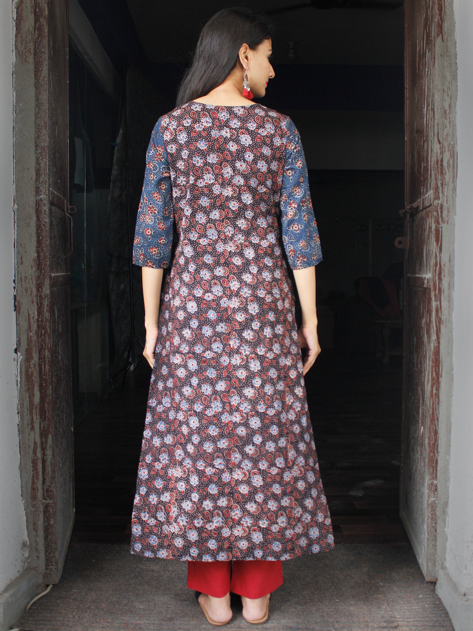Indigo Black Maroon Ajrakh Hand Block Printed Kurta - K161F1577