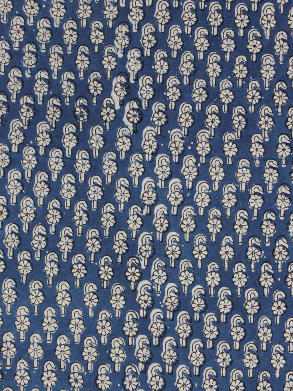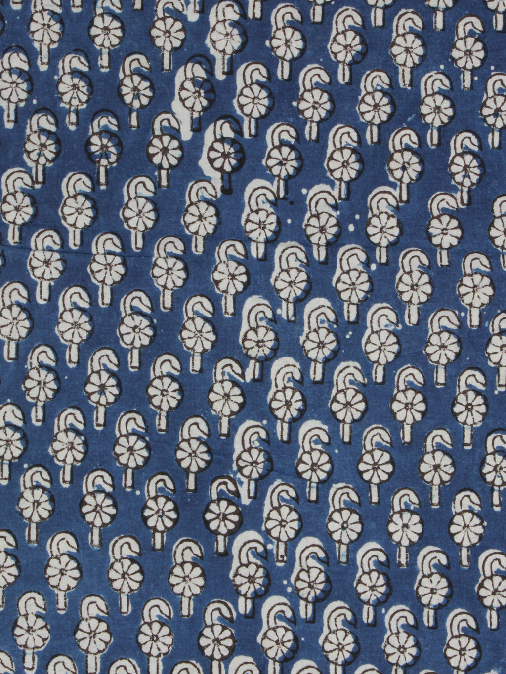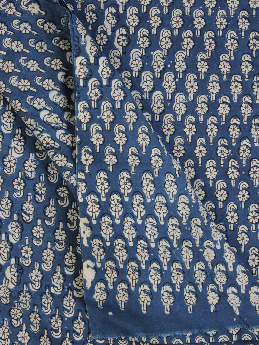 Indigo Ivory Black Ajrakh Hand Block Printed Cotton Fabric Per Meter - F003F2106