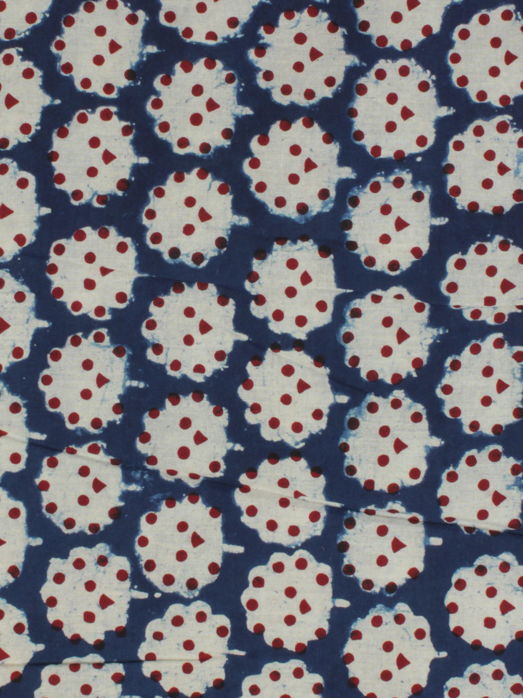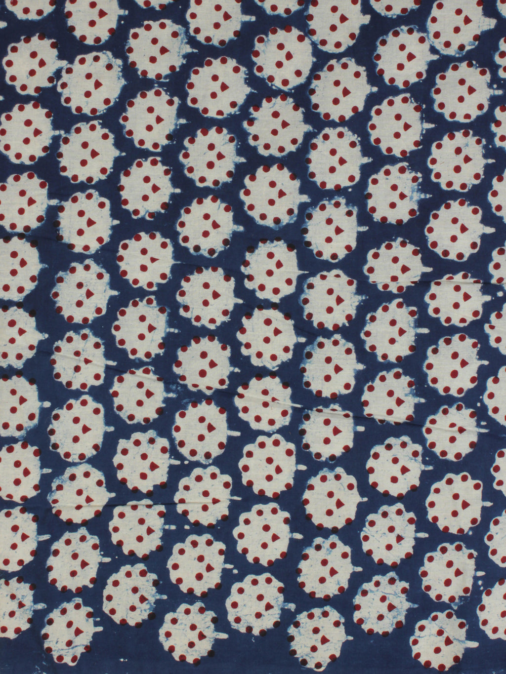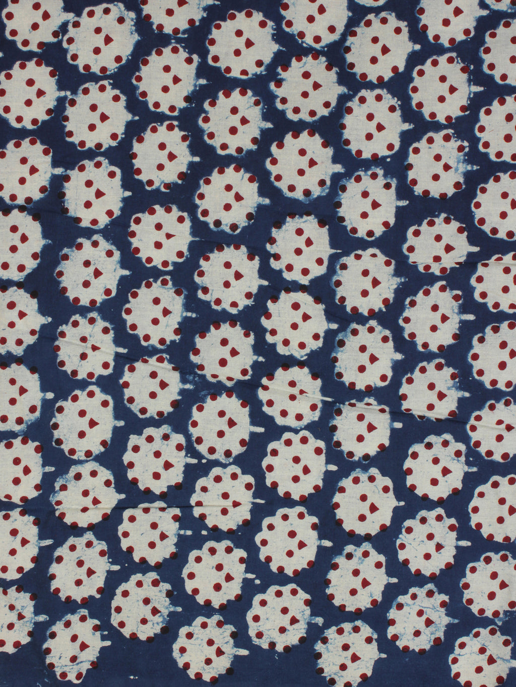 Indigo Ivory Red Ajrakh Hand Block Printed Cotton Fabric Per Meter - F003F2126