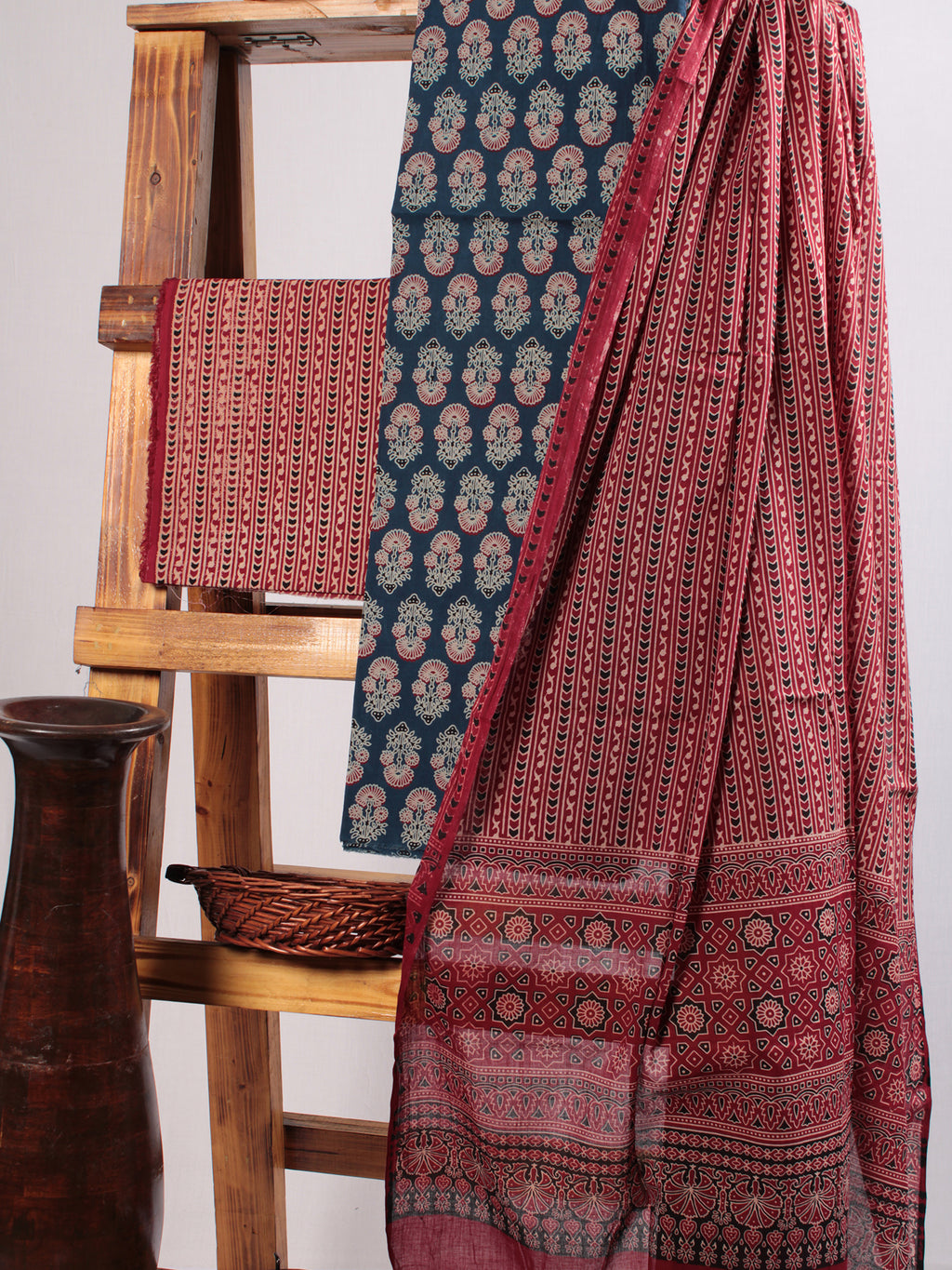 Indigo Maroon Black Ivory Hand Block Printed Suit Set (Set of 3) - SU01HB480